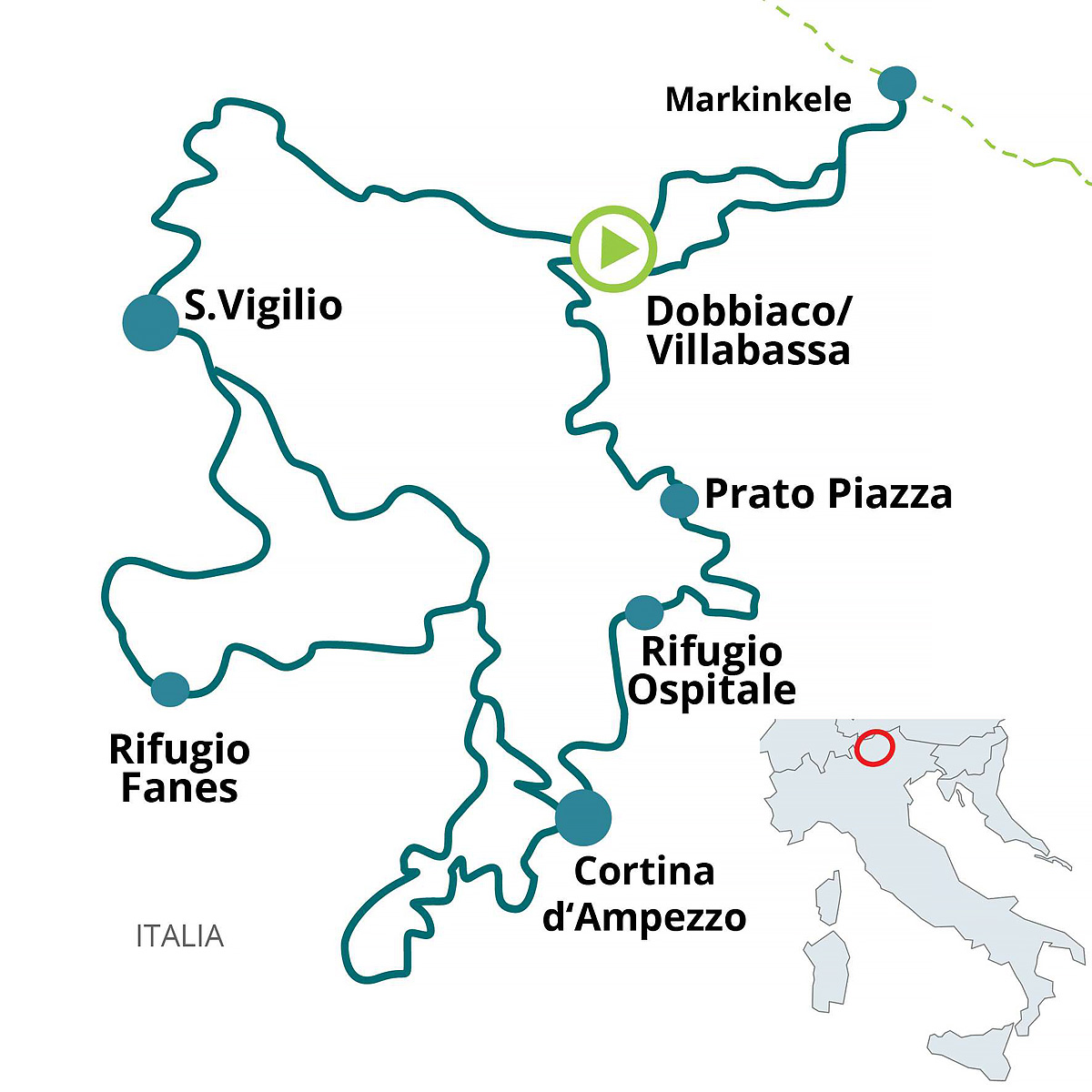 Tento itinerář, vytvořený především po starých vojenských a lesních cestách mezi majestátními vrcholy Dolomit, vám umožní každý den si vychutnat neuvěřitelnou přírodní scenérii hor, které jsou součástí světového dědictví UNESCO. Trasa částečně navazuje na oficiální MTB Maraton, akci konanou každoročně v červenci. Krajina Dolomit bude vaším společníkem na této cestě mezi přírodními parky Fanes-Sennes-Braies, Dolomiti d’Ampezzo a Dolomiti di Sesto.