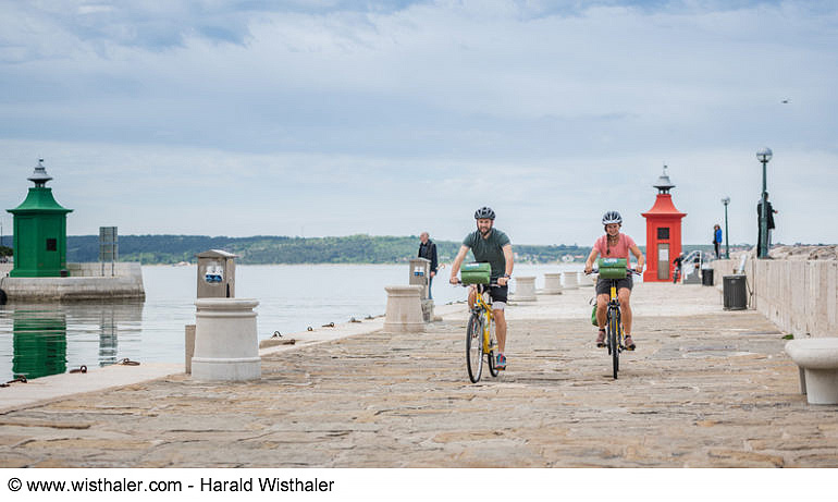 Jen pár kilometrů na kole vás dělí od slovinských hranic. Ve Slovinsku itinerář pokračuje převážně po cyklostezce, která vede přes vyhlášená rekreační střediska jako Koper a Izola, až do Piranu nebo Portorože, známých lázeňských měst na slovinské riviéře. Pokud preferujete sportovnější variantu, můžete zvolit trasu přes přírodní rezervaci Val Rosandra v italském vnitrozemí.