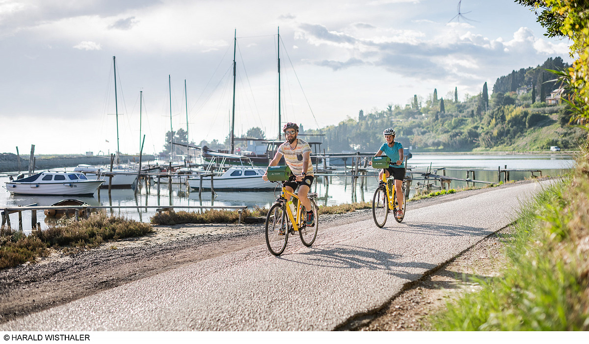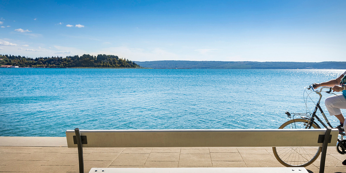 První etapa vás po pár kilometrech zavede za italskou hranici. Ve Slovinsku vás příjemné a pohodové cyklostezky povedou známými městy Koper a Isola d'Istria, než budete pokračovat směrem na Piran a Portorož, město na slovinské riviéře známé svými lázeňskými centry. Pokud dáte přednost kratší trase, můžete se svézt trajektem z Terstu do Muggie (jízdné není v ceně), delší varianta naopak vede do vnitrozemí přes údolí Val Rosandra. Z Muggie budete poté pokračovat podél pobřeží za doprovodu odrazů vln a vůně moře.