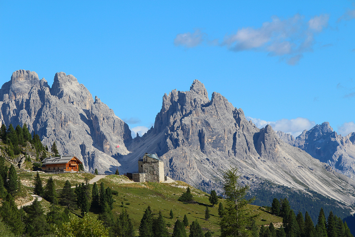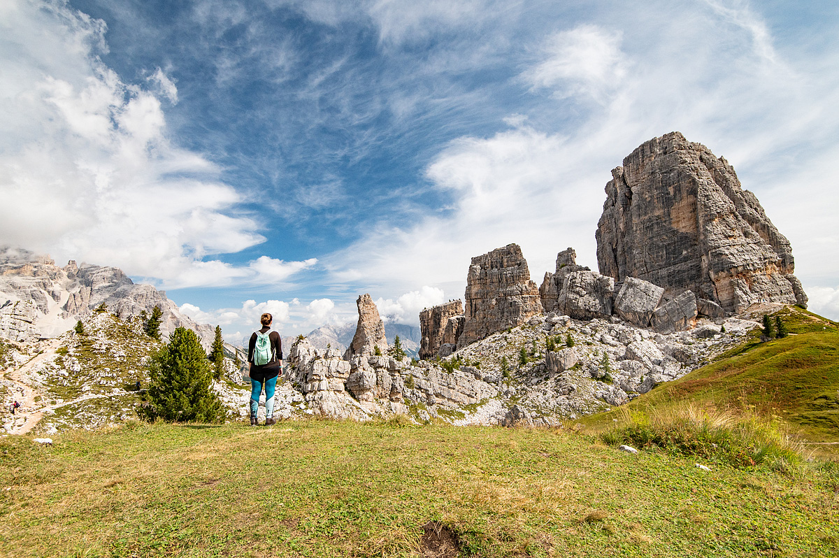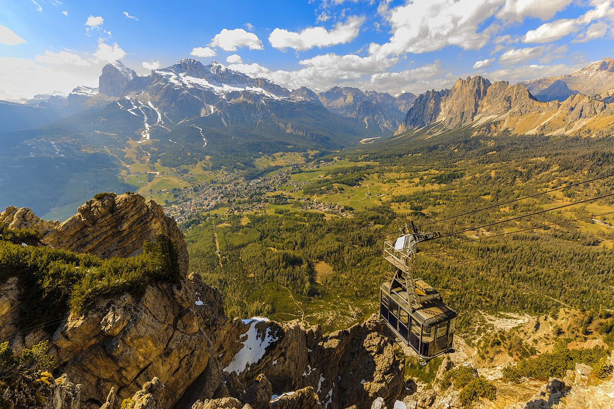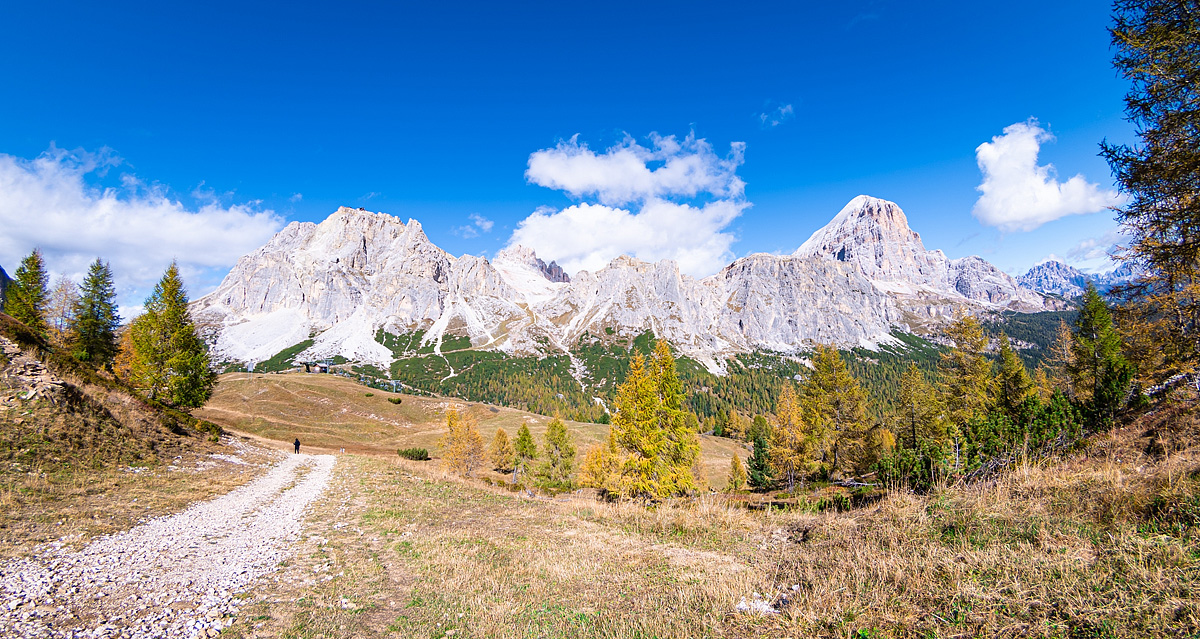 Panorama z výchozího bodu dnešní etapy je skutečně překvapivé: majestátní skalní masívy kolem Cortiny d´Ampezzo se jakoby dotýkají až nebe. Monte Cristallo, Tofane a skupina Fanes jsou skuteční protagonisté podívané, která nikdy nezevšední. I dnes si můžete vybrat z několika variant tras: delší vás povede směrem k Forcella Faloria, kratší trasa pak po panoramatické stezce Dolomieu. U obou těchto variant se nahoru svezete lanovkou Cortina - Faloria (jednosměrné jízdné v ceně). Obě trasy se pak vinou přes Passo Tre Croci a poté vedou zpět do údolí směrem do Cortiny. Pokud se vám nechce využít lanovku na Falorii, můžete si udělat pěknou okružní túru kolem Cortiny nebo kolem menšího skalního útvaru Cinque Torri.