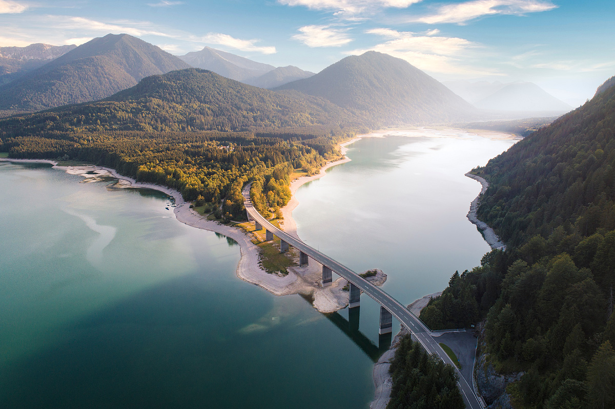Po výjezdu z Mnichova vás tato první etapa zavede směrem na Starnberg; dalších 15 km povede silnice podél břehu Starnbergského jezera posetého starobylými vilami a malebnými zámky. Pokud je obloha jasná, můžete vidět blízké hory, a dokonce i Zugspitze. Předhůřím Bavorských Alp se na konci dne dostanete do Bad Tölzu, města známého jako „Heilklimatischer Kurort“, což je termín, který naznačuje, že jeho klima je zdraví prospěšné. Vyhlášené lázeňské středisko spojuje kouzlo barokních staveb s přírodou díky mohutnému alpskému řetězci, který je na jihu lemuje.