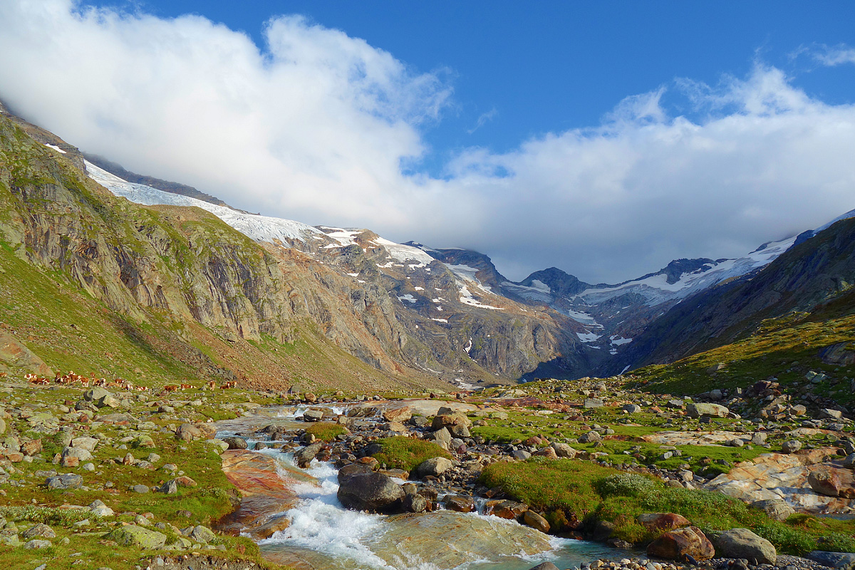 Ráno organizovaný transfer (jízdné v ceně) do Matreier Tauernhaus, poté výstup do průsmyku Felbertauern a k horské chatě St. Pöltner Hütte, cesta zpět do Matreier Tauernhaus (kratší varianta). V případě delší varianty se k horské chatě St. Pöltner Hütte vydáte od jezera Hintersee. V tomto případě cesta nejprve prudce stoupá přes pastviny a modřínové lesy až do panoramatického bodu Venedigerblick. Na vrcholu si užijete nádherný výhled na horu Großvenediger. Po krásné cestě s vrcholy v zádech budete sestupovat směrem k vesnici Innergschlöss a poté přes nádherné horské pastviny přijdete do Matreier Tauernhaus. Odtud se do Matrei dostanete regionální veřejnou dopravou (jízdné v ceně).