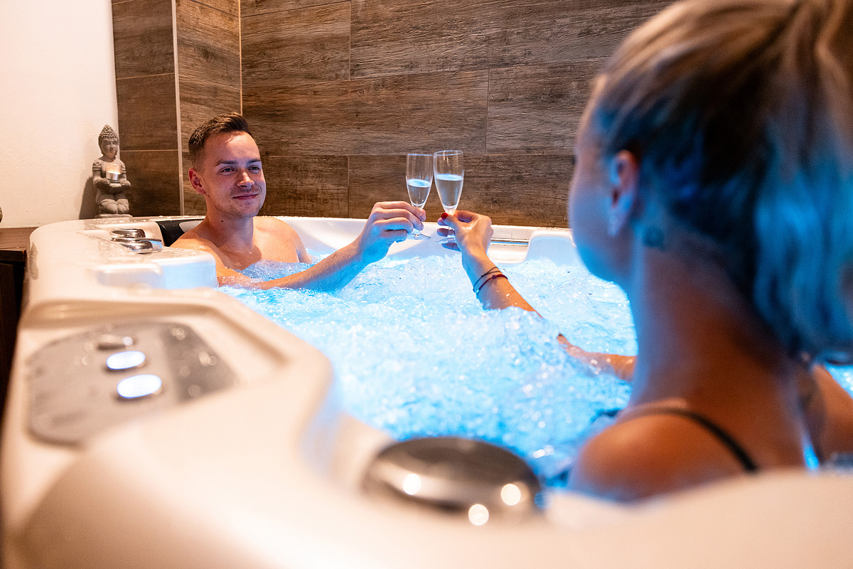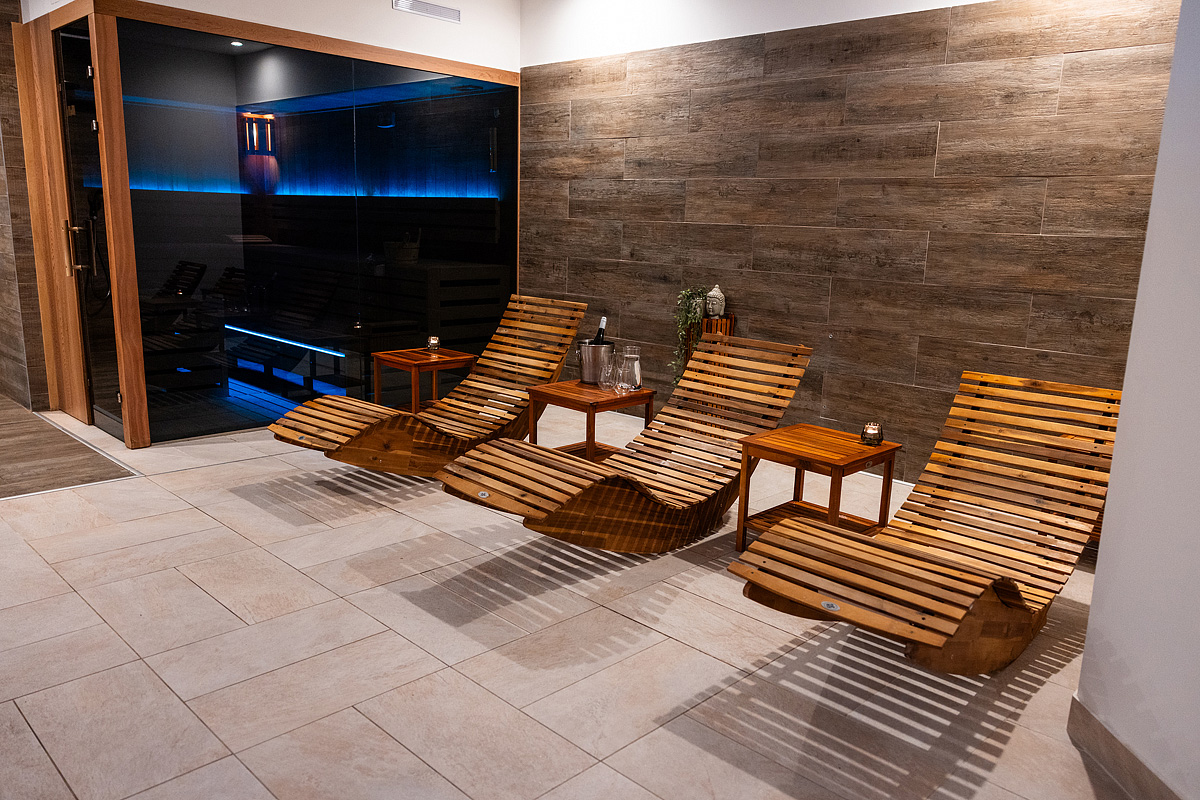 wellness *(sauna, vířivá vana, odpočinková zóna, sprchy s ledovou nádobou), masáže*