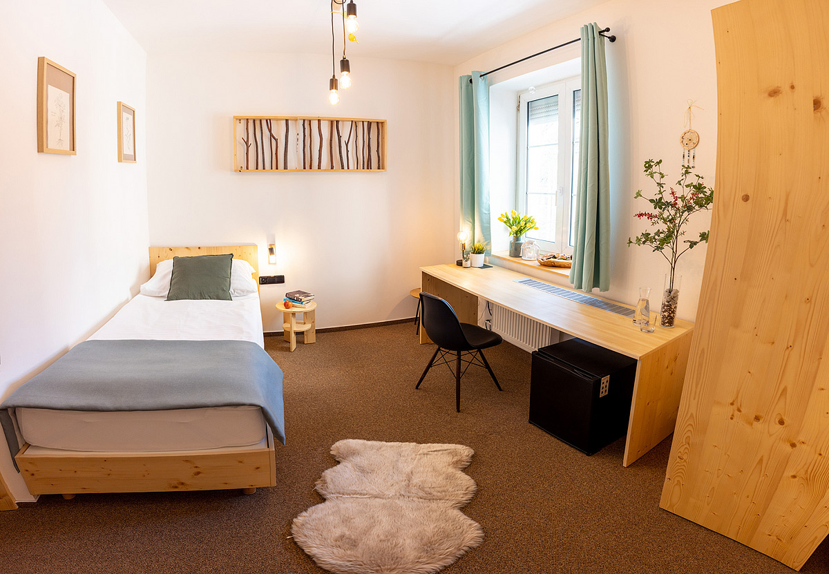menší pokoj se samostatným lůžkem, s možností 1 přistýlky, sociální zařízení