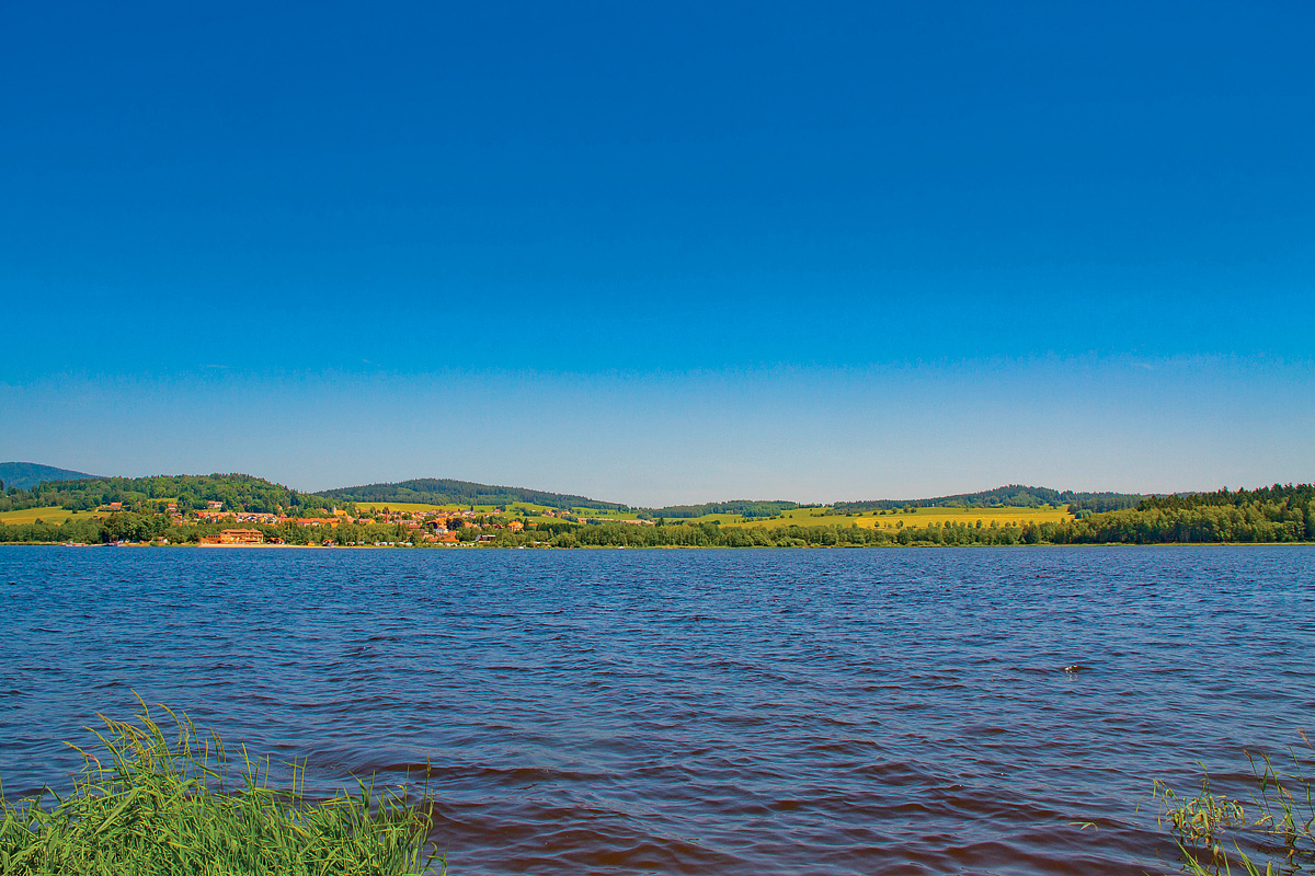 Černá v Pošumaví nabízí spoustu zábavy pro vodní sportovce, cyklisty, rodiny s dětmi a rybáře, ale také nádherné vyhlídky na Lipenské jezero a Smrčinu (1.338 m), zrcadlící se na jeho hladině. Oblíbená rekreační obec leží v okresu Český Krumlov na severním břehu Lipna v jeho nejširší části mezi Frymburkem a Horní Planou. Dominantou obce je barokní, novorománsky upravený kostel Neposkvrněného početí Panny Marie z konce 18. století. U obce leží ložiska grafitu, těžba tuhy a rašeliny tu začala už v 19. století a o sto let později patřily zdejší tuhové závody k největším exportérům grafitu na světě. Dnes se můžete projít po naučné stezce je grafitové štole Josef anebo se podívat na uměle vyhloubené jeskyně v Muckovských vápencových lomech. Podobně proslulý býval knížecí schwarzenberský pivovar.