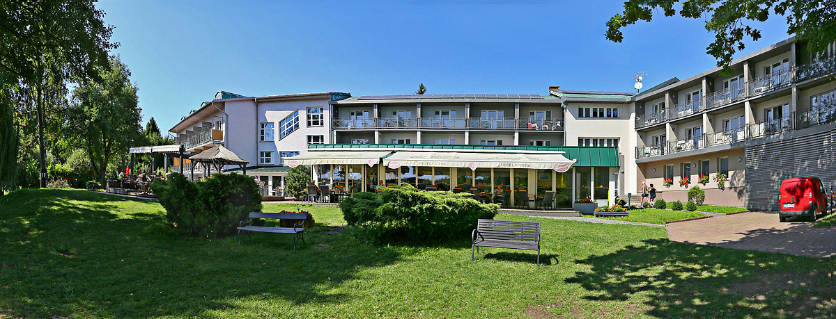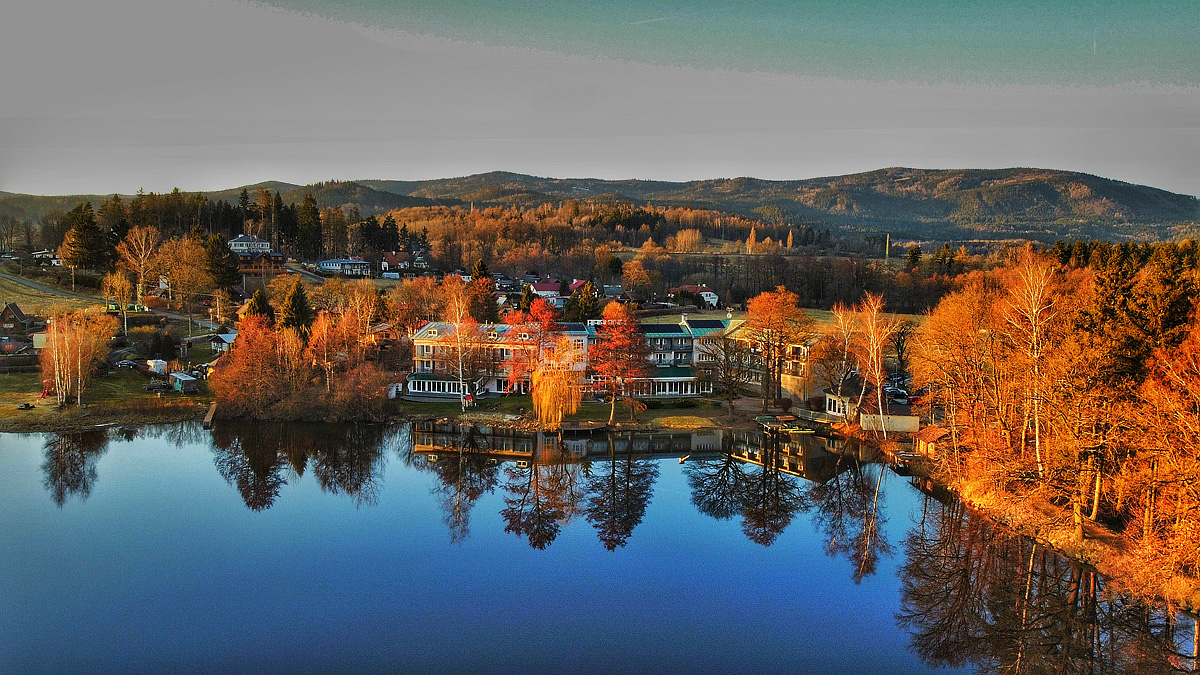 pokoj s manželskou postelí či 2 samostatnými lůžky a případně přistýlkou, sociální zařízení se sprchou, balkon s výhledem na jezero