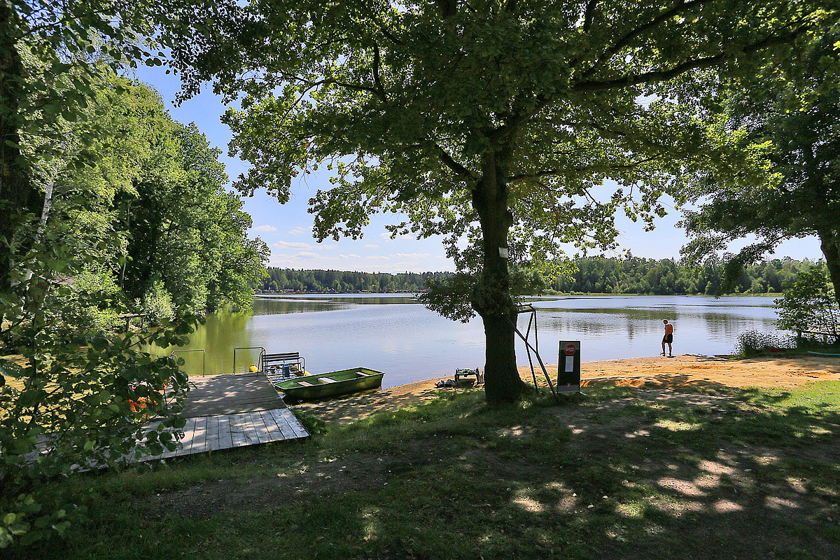 výjimečná poloha v klidném prostředí přímo u pláže s pozvolným vstupem do rybníka