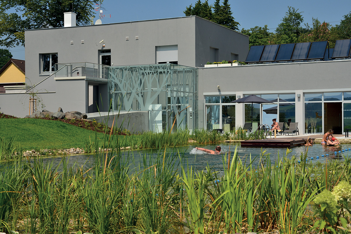 pokoje typologie wellness se nachází v depandanci (ve wellness budově) hned u biotopu; s hlavní budovou s recepcí a restaurací jsou propojené 70 m podzemní chodbou