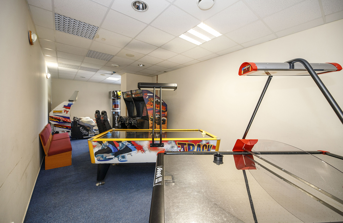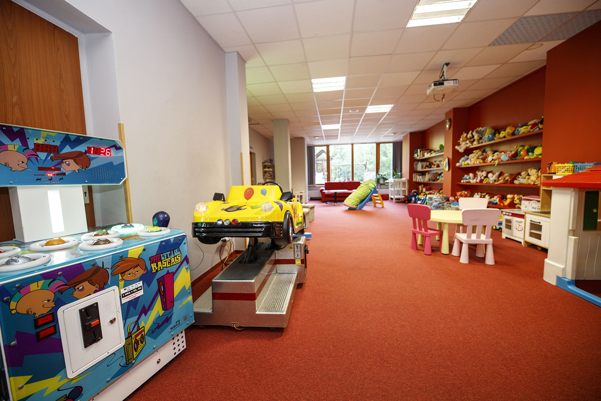 recepce, lobby s knihovnou, restaurace, jídelna, bar, společenská místnost, dětská herna, dětské hriště s trampolínou, místnost s herními automaty a air hockey, konferenční sál* až pro 70 os. s projekční technikou, seminární místnost*, sluneční terasa s posezením, úschovna jízdních kol, místnost pro úschovu zavazadel, výtah (neobsluhuje všechny patra), vyhrazené parkoviště, wi-fi připojením k internetu