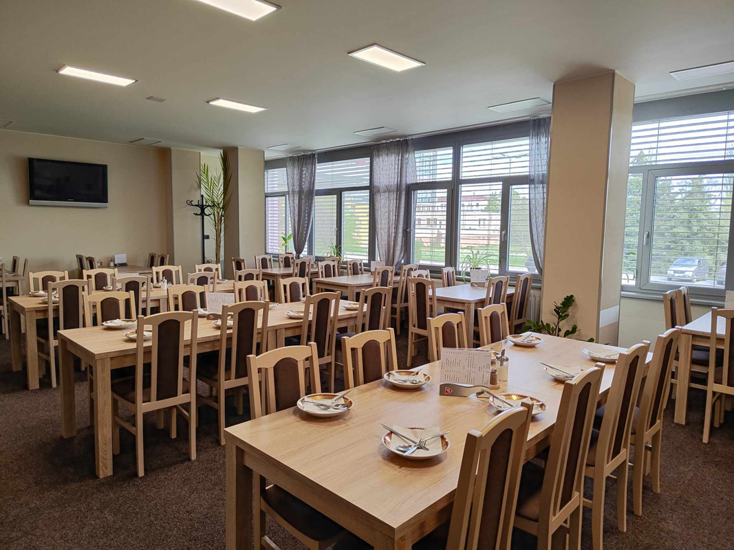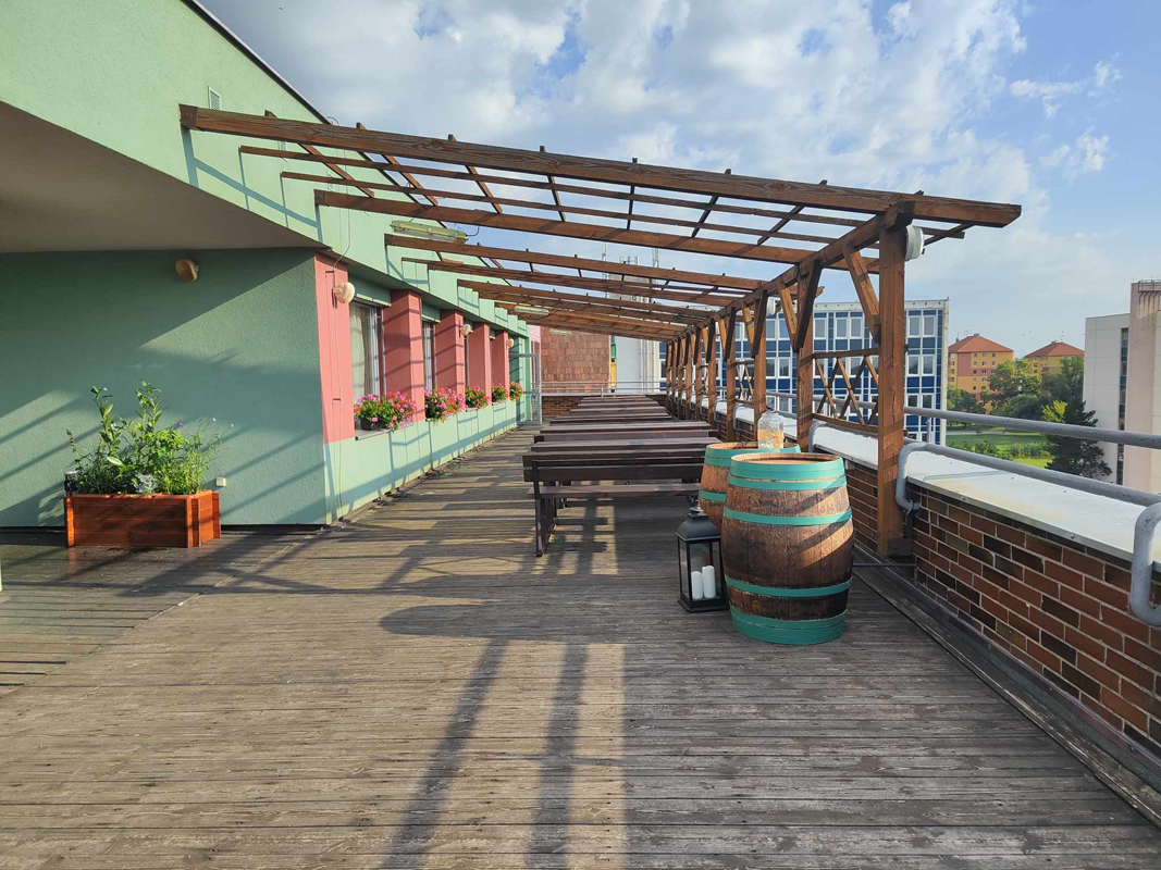 recepce, restaurace s letní terasou, bar, seminární místnost až pro 55 osob s audio-vizuální technikou, wi-fi připojení k internetu, úschovna zavazadel i kol, výtah, vyhrazené parkoviště
