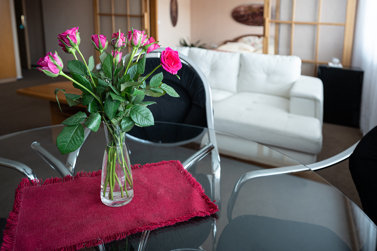 ložnice s manželskou postelí či 2 samostatnými lůžky, obývací místnost se sedací soupravou, sociální zařízení s vířivou vanou