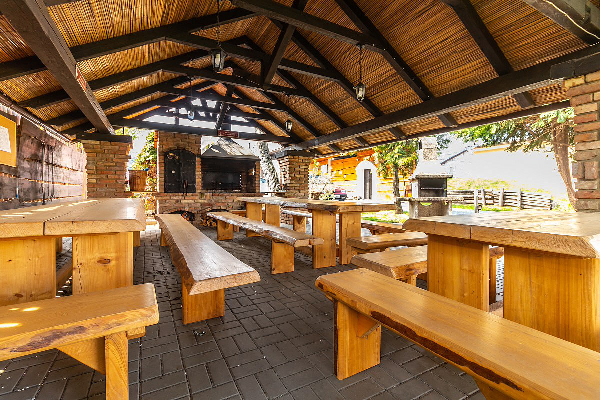 venkovní terasa s posezením a grilem a udírnou, vyhrazené parkoviště