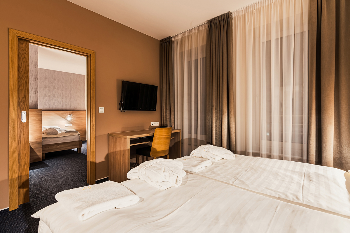Superior 4 - 31 m² - pokoj s manželskou postelí či s oddělitelnými lůžky a 2 samostatnými lůžky, sociální zařízení