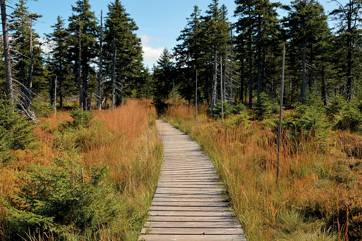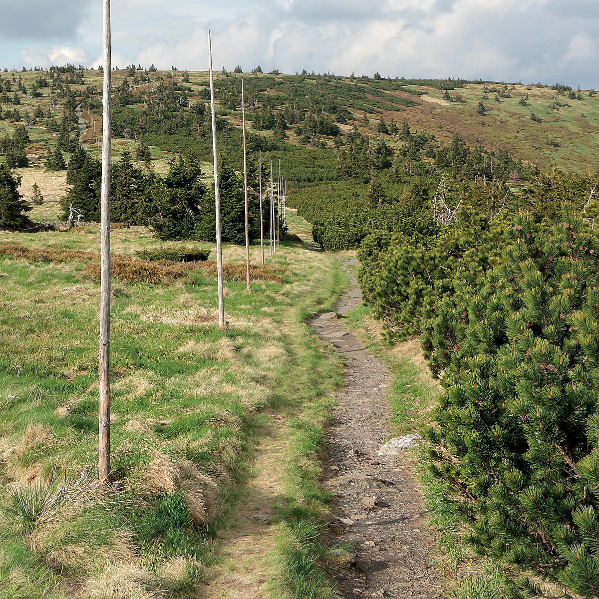 Nejvhodnějším nástupním místem na průzkum západní části Hrubého Jeseníku je Ramzovské sedlo. Při výstupu na Šerák je sice nutno překonat výškový rozdíl téměř 600 m, lze si však vypomoci lanovkou. Na vrcholu Šeráku (1.351 m n. m.) jsou holé pláně i nízké smrčky, pod vrcholem stojí Jiřího turistická chata. Hřebenová trasa se stáčí k jihovýchodu a z nevýrazného sedla stoupá podél tyčí na holý vrchol Keprníku (1.423 m n. m.), odkud se otevírá za příznivého počasí jedinečný výhled na Jeseníky i horské hřebeny od Krkonoš až po Beskydy. Z holého temene vede sestup k rozcestí Trojmezí, dále k Vřesové studánce pod vrcholem Černé hory (1.333 m n. m.), odkud trasa klesá na Červenohorské sedlo.