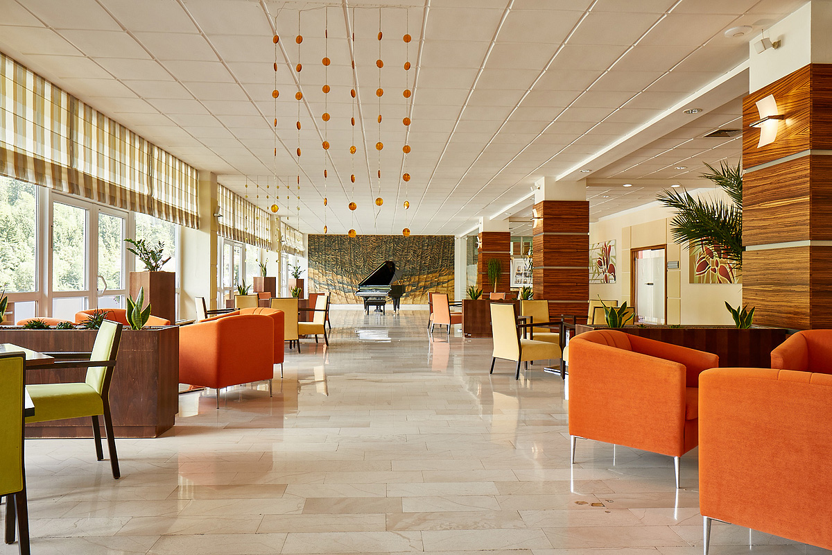 recepce, restaurace, kavárna, sluneční terasa, knihovna, konferenční salonky, concierge, dětský koutek bez obsluhy, výtah, místnost pro úschovu kol, parkování na nedalekém parkovišti (200 m) *, kadeřnictví*, prodej novin a časopisů, wi-fi připojení k internetu