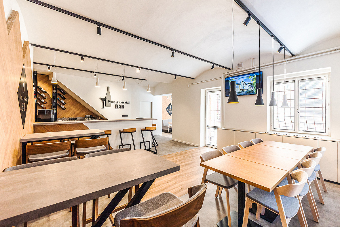 recepce / hotelový trezor, lobby, restaurace, stylový vinný a koktejlový bar, wi-fi připojení k internetu, 2x seminární místnost s projekční technikou a wi-fi připojením k internetu, místnost pro úschovu zavazadel, výtah, vyhrazené parkoviště*