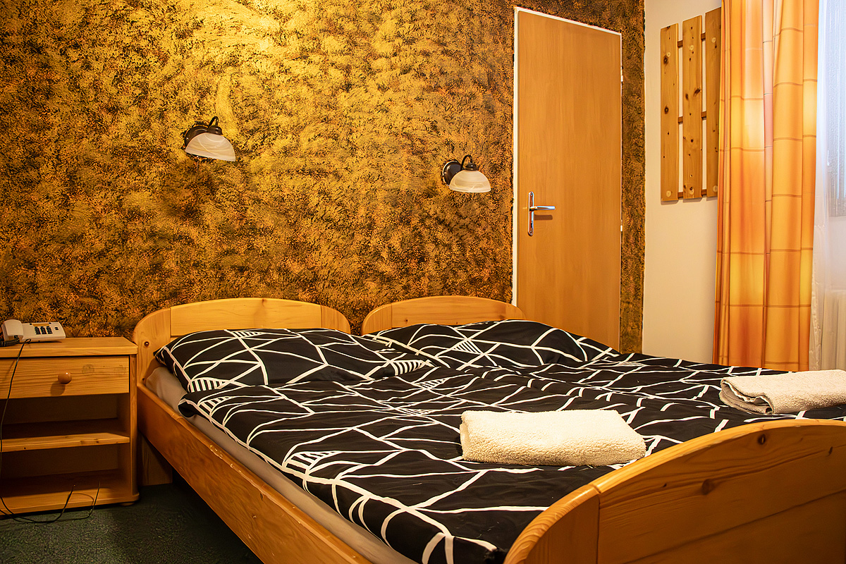 pokoj s manželskou postelí se zpravidla oddělitelnými lůžky, sociální zařízení