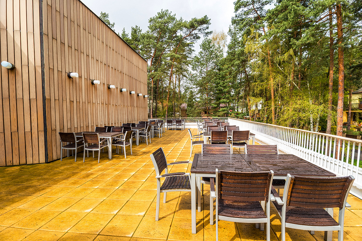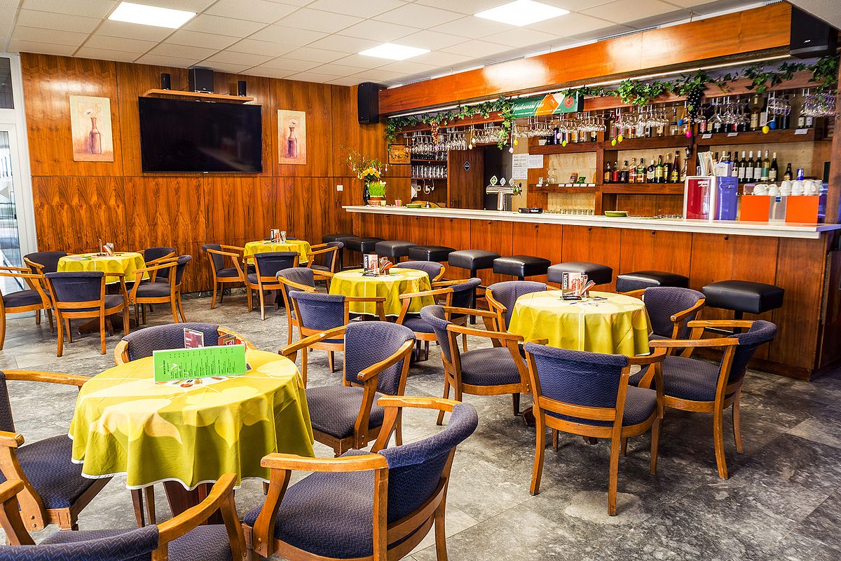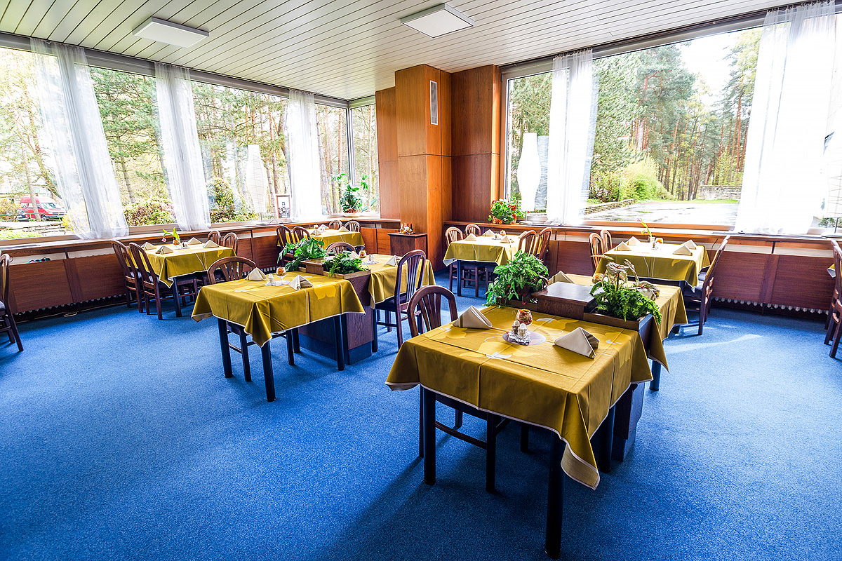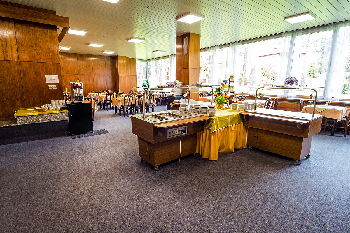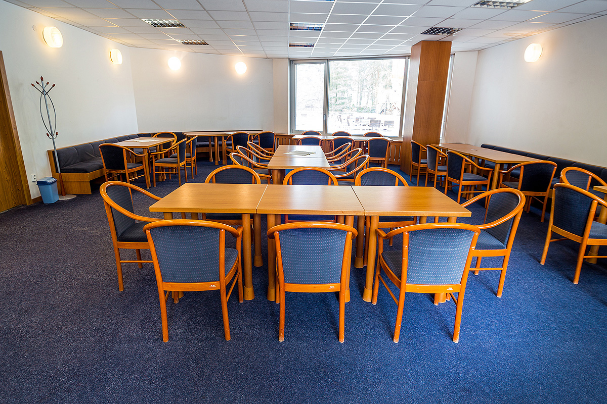 recepce, lobby, restaurace, noční bar s terasou, kongresový sál pro 150 osob, 4 salonky pro 15 - 50 osob, úschovna kol, výtah, parkoviště, wi-fi připojení k internetu