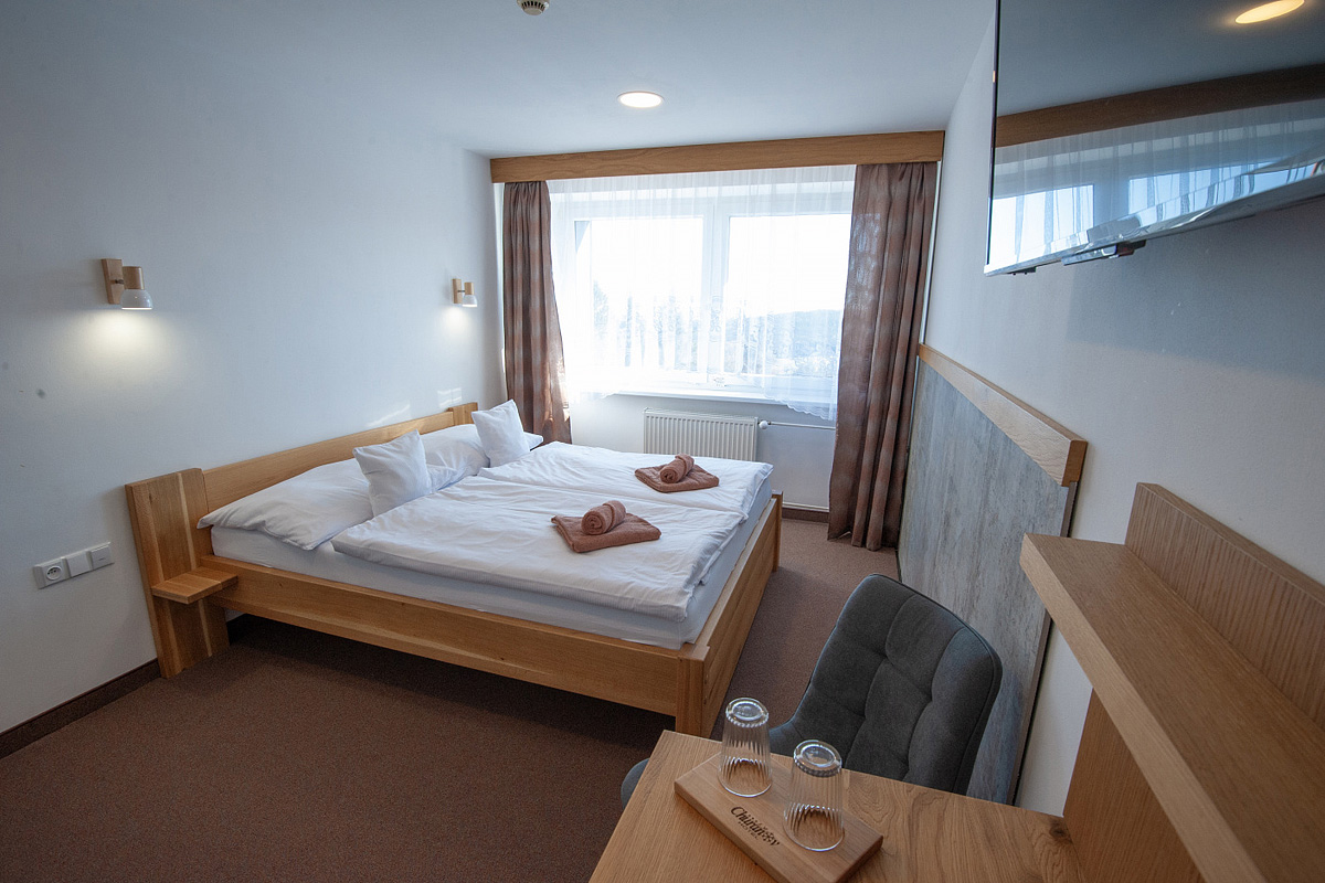 pokoj po kompletní rekonstrukci, s manželskou postelí či s 2 oddělitelnými lůžky, sociální zařízení