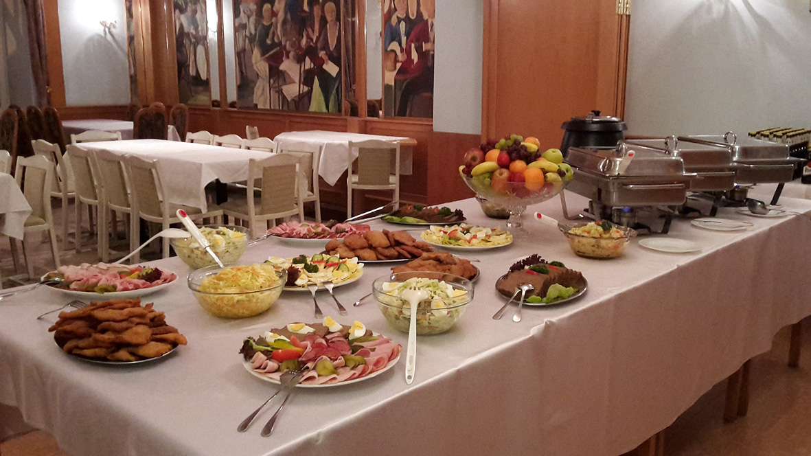 formou servírovaného 3-chodového menu (polévka, hlavní chod, dezert), nápoje za poplatek