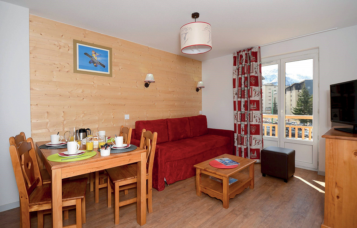 33 m² - 1 ložnice s manželskou postelí, obývací pokoj s kuchyňským koutem a rozkládacím gaučem typu "šuplík" pro 2 osoby, sociální zařízení se sprchou či vanou, zpravidla balkon