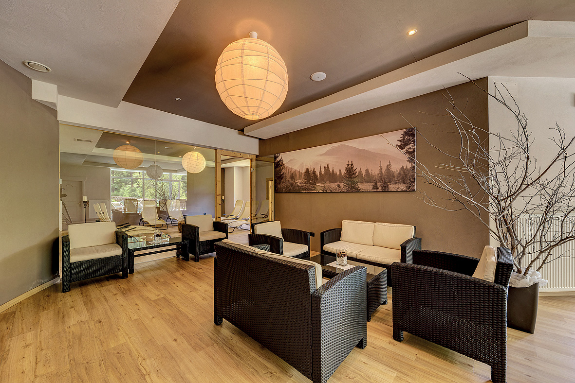 bazén s dětským bazénkem, venkovní bazén, vířivka až pro 8 osob#, venkovní vířivka až pro 8 osob, bio sauna#, sauna#, aromatická pára#, ledová lázeň#, 2x multifunkční sprcha#, vertikální solárium*#, relaxační koutek s lehátky#, masáže*, posilovna#, biliár*, stolní tenis, stolní fotbal; služby označené # mohou využívat jen osoby od 16 let