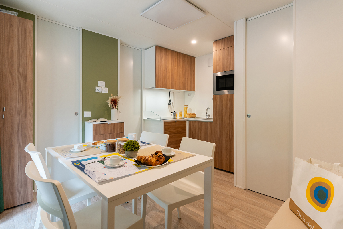 jedná se o samostatné mobilhomy, každý se svým vlastním sociálním zařízením; mobilhomy jsou rozmístěny v blízkosti centrální budovy kempu, kde se pak nachází i níže vypsané zázemí