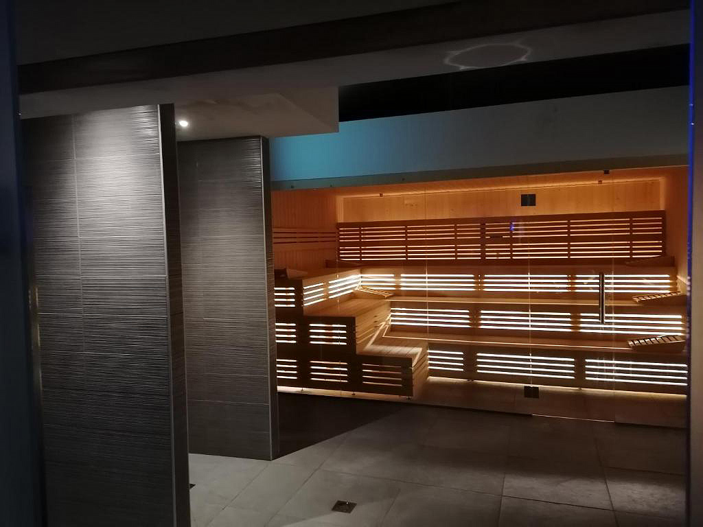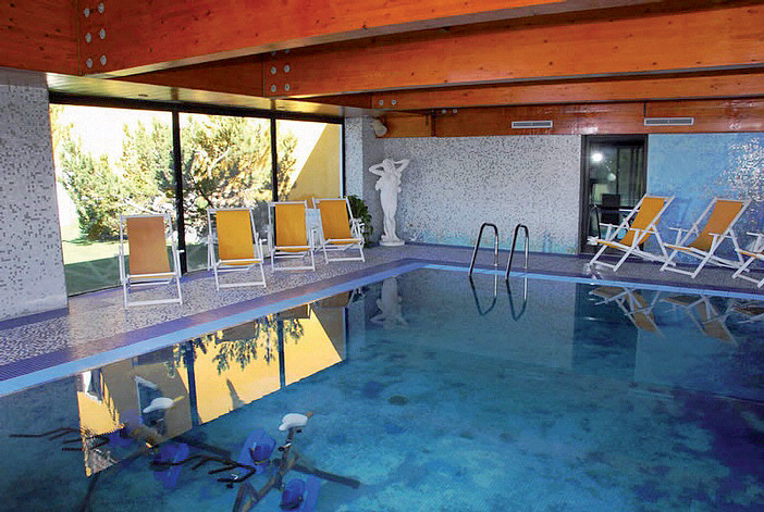 bazén 11 x 6 m, venkovní vířivka až pro 4 osoby, sauna#, pára#, 2x multifunkční sprcha#, relaxační sál# s lehátky, Kneippův chodník#, velká nadstandardně vybavená posilovna, squashový kurt, biliár, stolní tenis, stolní fotbal; služby označené # mohou využívat jen osoby od 16 let
