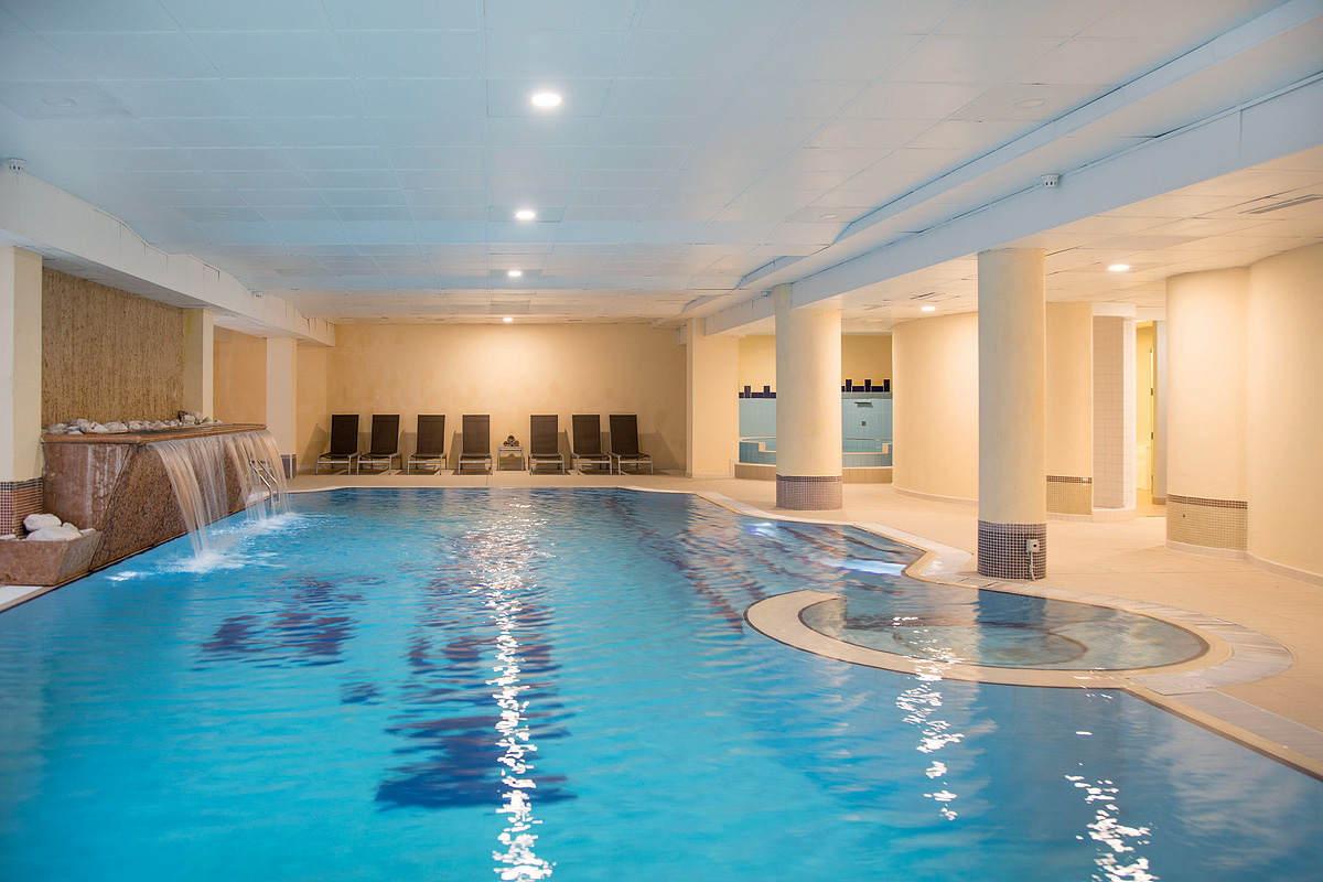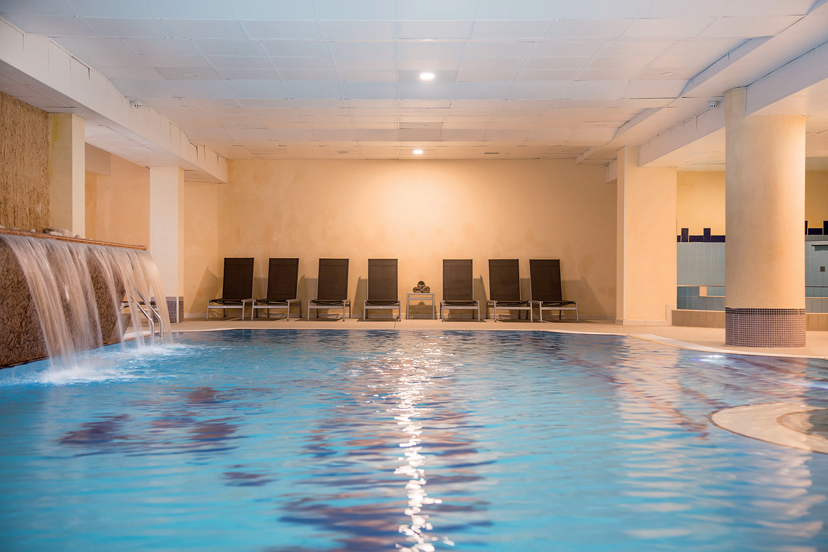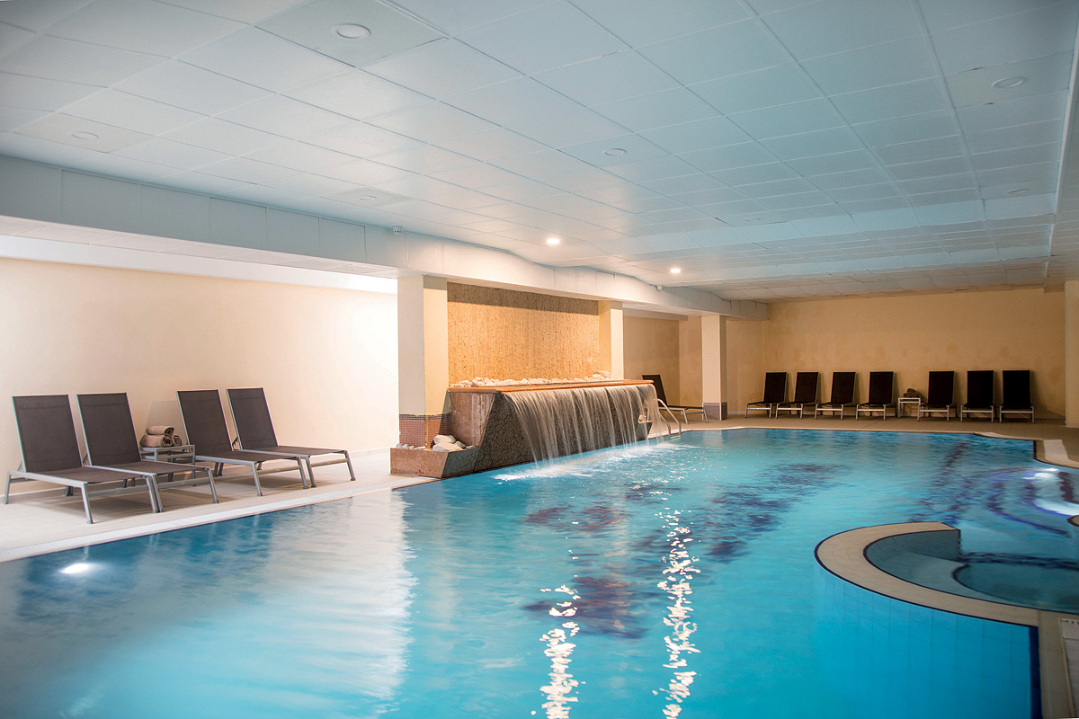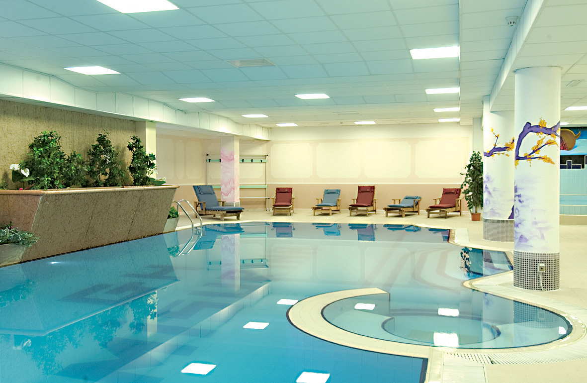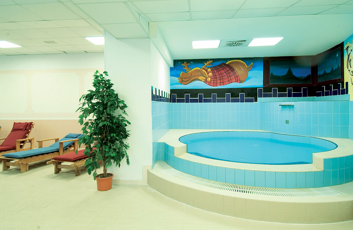 bazén# 14 x 6 m s vířivkou# až pro 8 osob a lehátky, dětský bazének (vnitřní průměr 2,70 m), sauna#*, pára#*, masáže#*, kosmetické služby#*; služby označené # mohou využívat jen osoby od 16 let; vstup dětí do bazénu pouze v doprovodu dospělé osoby a ve vymezených časech (od 10.00 do 12.00 hod a od 14.00 do 16.00 hod.)