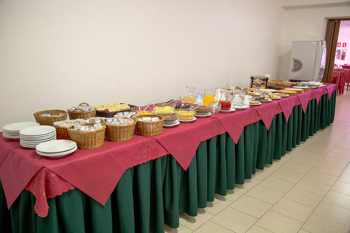 servírované menu - výběr ze 3 teplých předkrmů a 3 hlavních jídel s přílohou, servírovaný desert či ovoce, salátový bufet, pramenitá voda a stolní víno, ostatní nápoje za poplatek