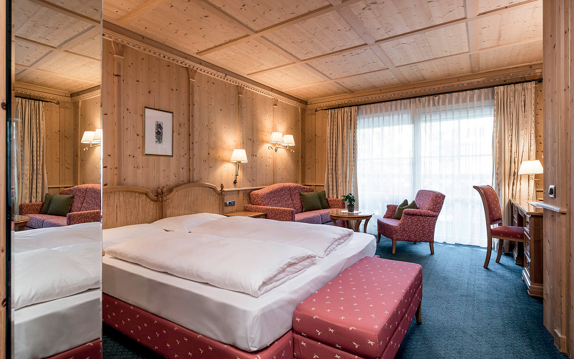 klimatizace (jen u typologie Suite 2+2), TV sat., telefon, wi-fi připojení k internetu, trezor, fén, minibar, župany do wellness*