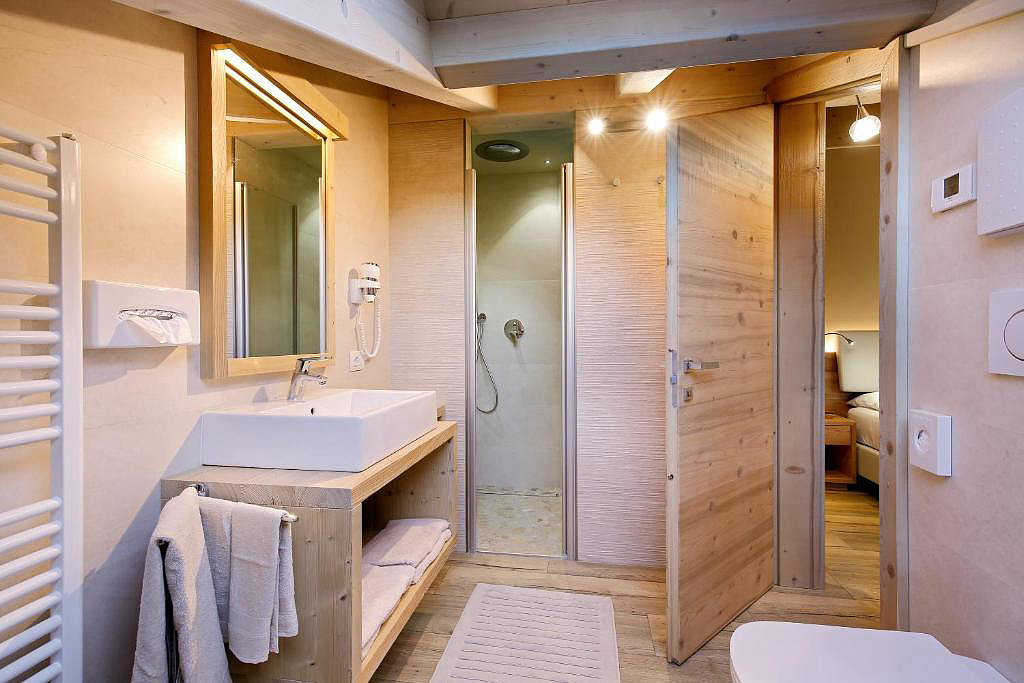 25 m² -pokoj s manželskou postelí a rozkládacím gaučem pro 2 osoby (o velikosti 1,5 lůžka) a 1 samostatným lůžkem, sociální zařízení, balkon, výhled do údolí