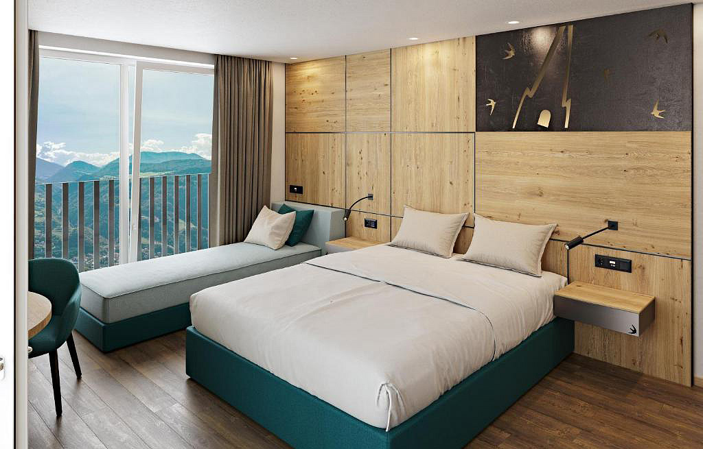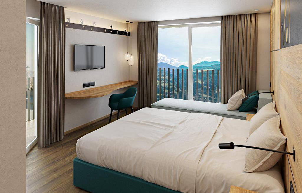 22 m² - pokoj s manželskou postelí a případně 1 dalším samostatným lůžkem, sociální zařízení, balkon