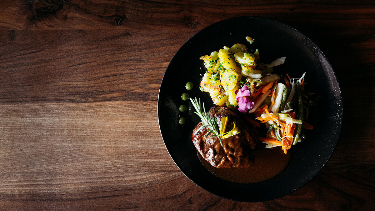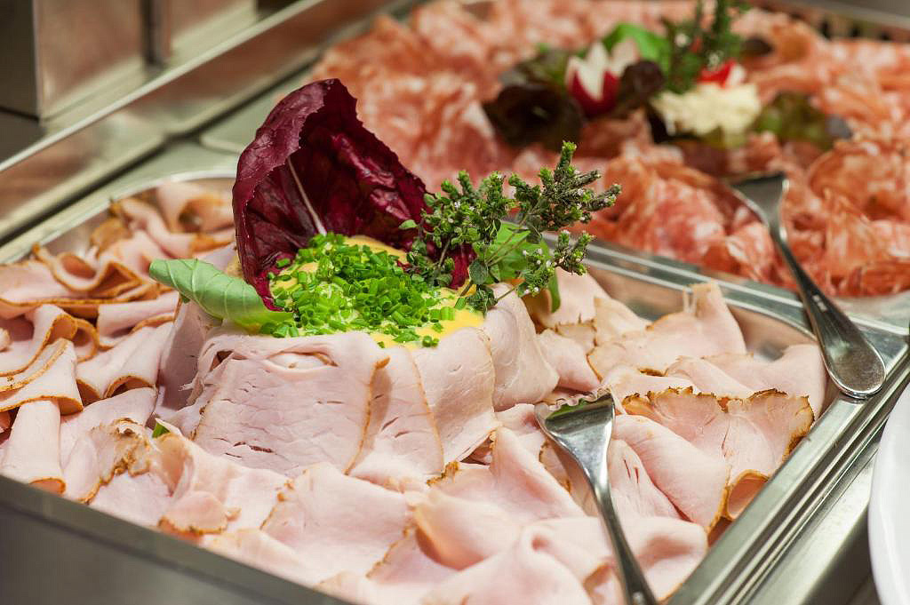 servírované menu s výběrem ze 2 až 3 teplých předkrmů a 2 až 3 hlavních jídel s přílohou, salátový bufet, servírovaný dezert či ovoce, nápoje za poplatek