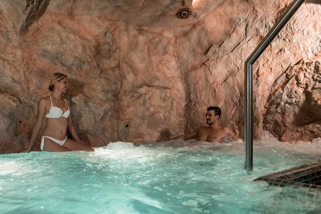 solná jeskyně s vířivkou# až pro 12 osob, 2x sauna#, pára#, infrakabina#, horizontální solárium#*, relaxační koutek# s lehátky, kneippův chodník#, masáže#*, kosmetické služby#*, posilovna; služby označené # mohou využívat děti do 14 let jen do 16.30 hod.