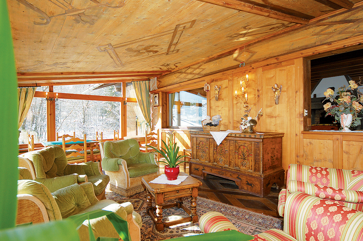 recepce / wi-fi připojení k internetu, restaurace, bar s pecí, taverna / dětský koutek, společenská místnost s krbem, TV sat., DVD a pianem, sluneční terasa s posezením a lehátky, zahrada, výtah, úschovna jízdních kol, vyhrazené parkoviště (počet míst omezen; další parkování v blízkosti)