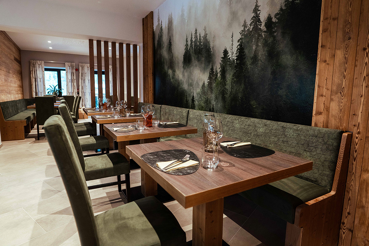 výběr z menu v hotelové restauraci s označením „tradizione“, 1 předkrm, 1 první chod, 1 hlavní jídlo s přílohou, 1 dezert, nápoje za poplatek