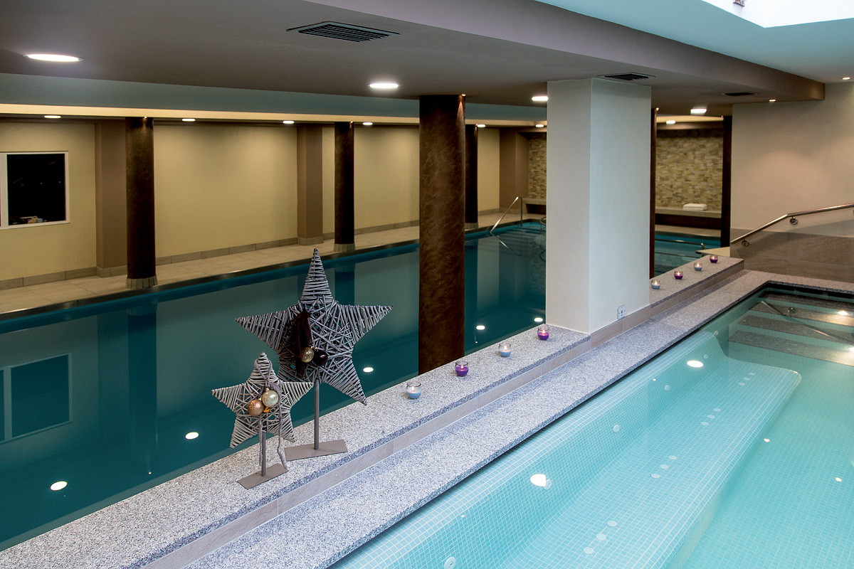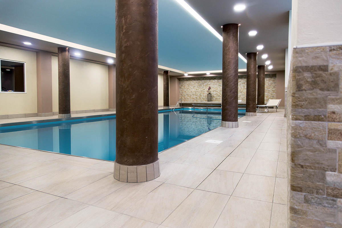 bazén 15 x 6 m s lehátky, vířivka až pro 15 osob, 2x sauna#, pára#, relaxační koutek# s lehátky, posilovna#, stolní tenis, biliár*, stolní fotbal*; služby označené # mohou využívat jen osoby od 16 let