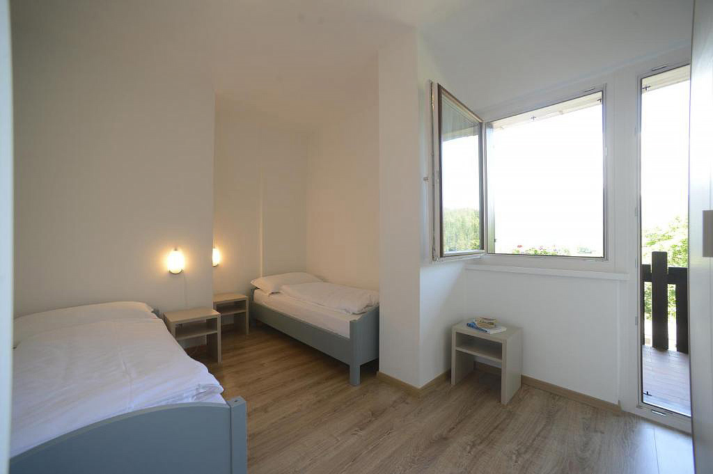 48 m² - 1 ložnice s manželskou postelí, 1 ložnice se 2 samostatnými lůžky, obývací pokoj s kuchyňským koutem a rozkládacím gaučem pro 2 osoby, sociální zařízení, balkon