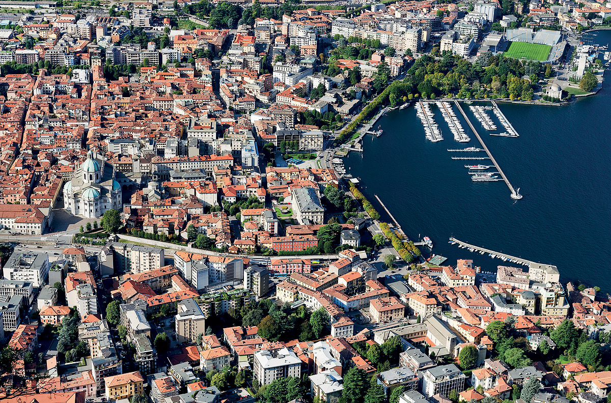 Z památek lze jmenovat Dóm ze 14. století a starobylý kostel Brolleto z roku 1215. V centru starého města poblíž jezera a katedrály naleznete velký pomník slavného zdejšího rodáka, fyzika Alexandra Volty. Dobře je zachováno i středověké opevnění města.