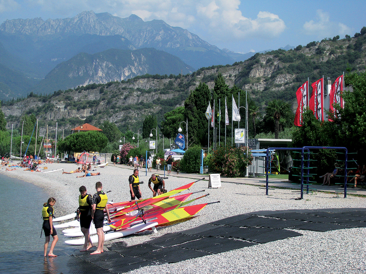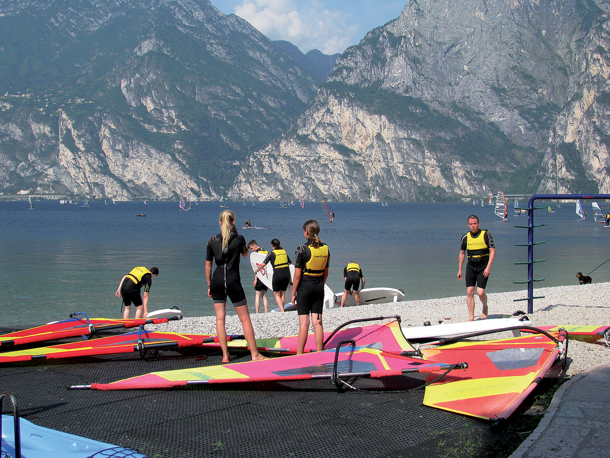 Každého rána ve stejnou hodinu se hladina zčeří pravidelně vanoucím větrem a jezero se vzápětí začne pestrobarevně hemžit plachtami windsurferů a draky kitesurferů, kteří by lepší podmínky pro tuto svoji drogu hledali jinde v Evropě jen stěží. Koupání v Gardském jezeře je na okrajích sezóny spíše pro otužilejší, ovšem v kterémkoli ročním období se odmění svou čistotou, jež se blíží vodě pitné, o vynikající podvodní viditelnosti nemluvě. Na své si zde však přijdou i milovníci vodních lyží, šlapadel či kajaků.