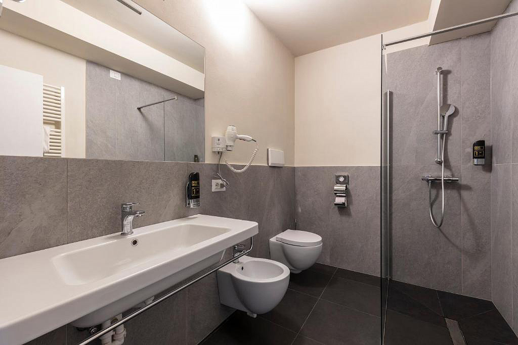 26 m² - pokoj s manželskou postelí či 2 samostatnými lůžky, sociální zařízení se sprchou, balkon