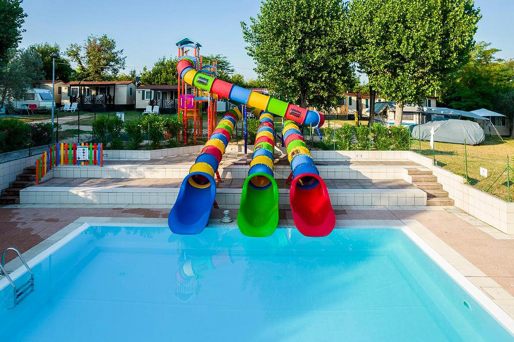 bazén 20 x 10 m s umělým vodopádem, lehátky a slunečníky, dětský bazén 9 x 6 m se skluzavkami, stolní tenis, minigolf, půjčovna lodí*