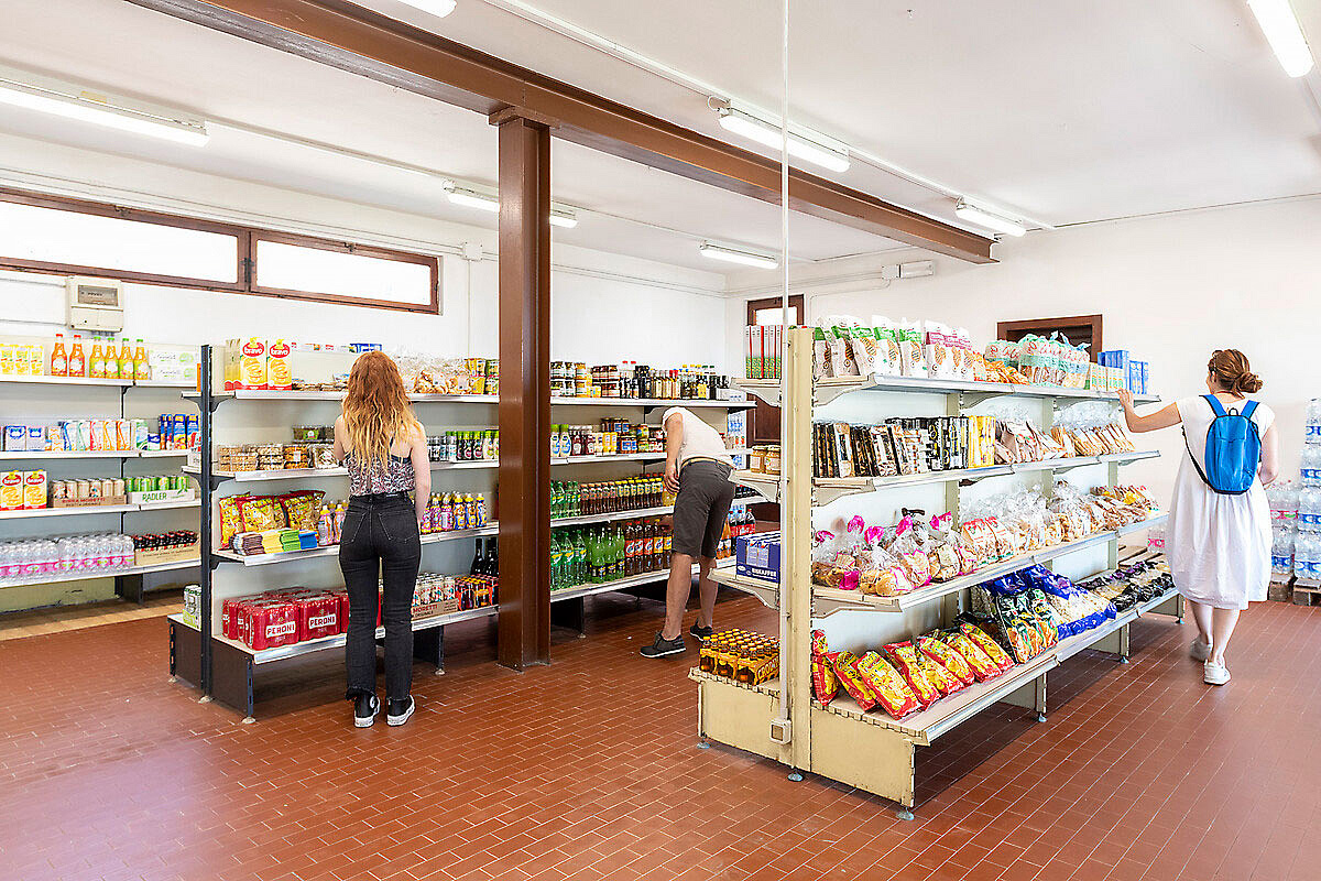 recepce, bar, restaurace / pizzerie, dětské hřiště, animační programy (od poloviny června do konce srpna), vyhrazená parkovací stání, pračka* a sušička*, minimarket, internet-point*