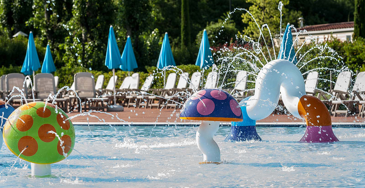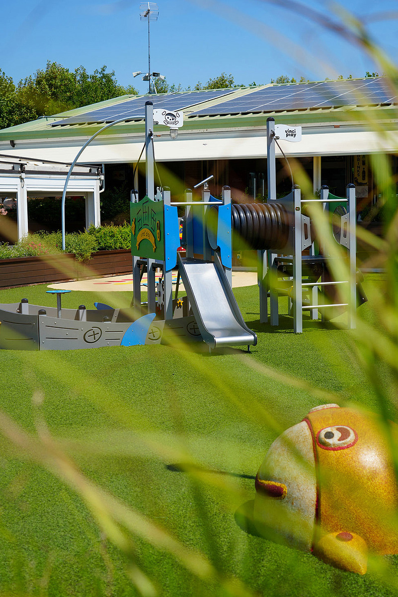 recepce, bar, restaurace / pizzerie, zmrzlinárna, dětské hřiště, dětská herna, animační programy (od poloviny června do konce srpna), pračka* a sušička*, myčka nádobí*, minimarket, vyhrazené parkoviště / nabíjecí stanice