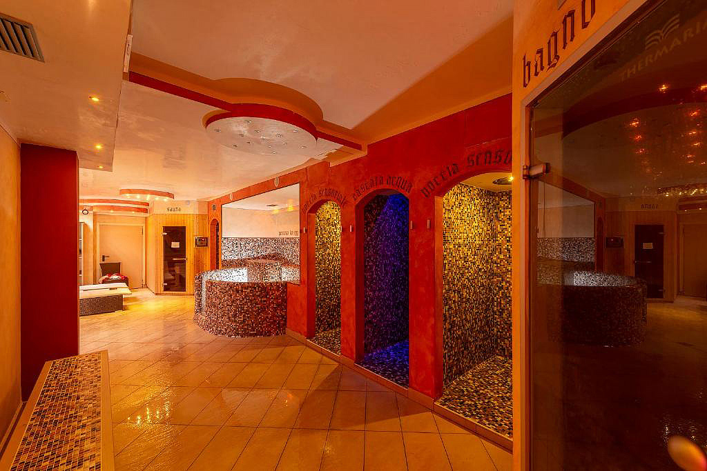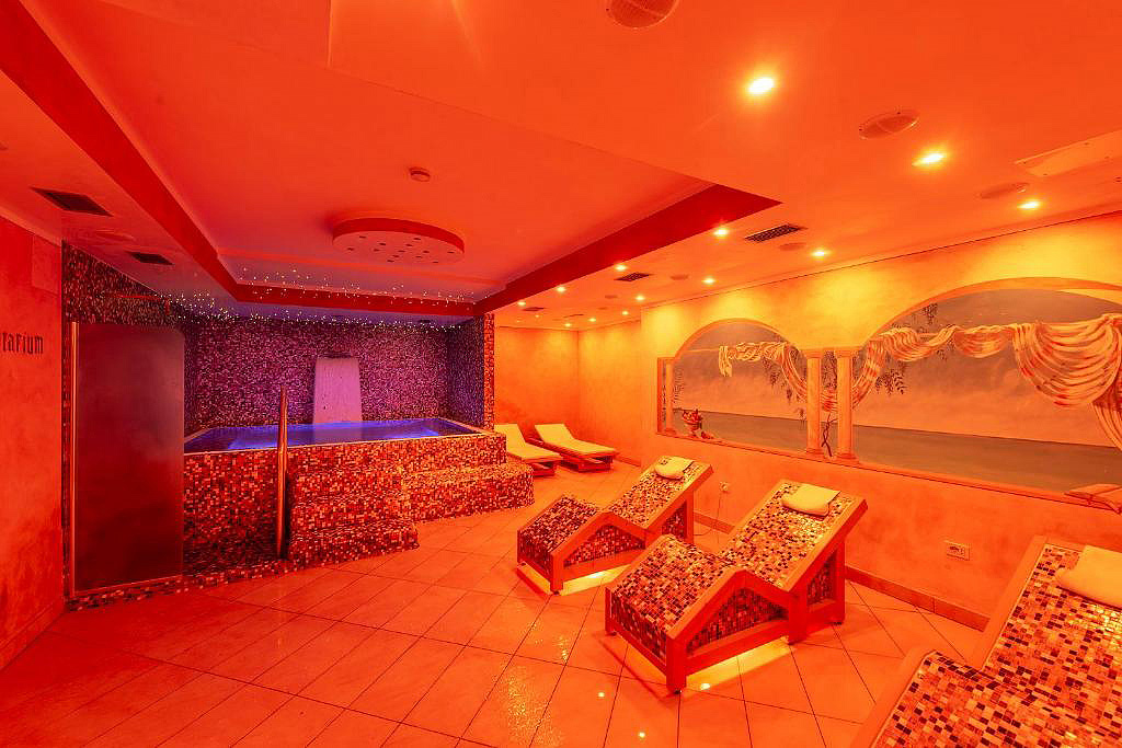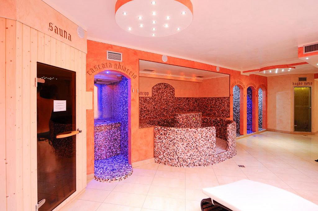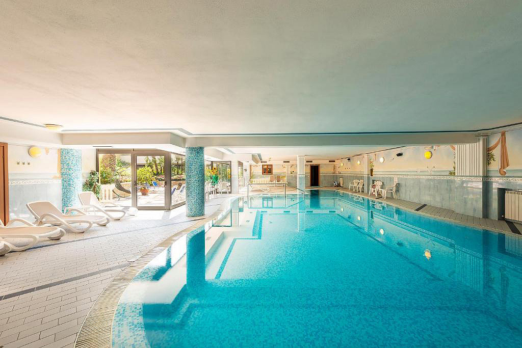 venkovní bazén 15 x 7 m, s lehátky a slunečníky, vnitřní bazén 16 x 7 m, dětský bazén 5 x 3 m, vířivka*#, finská sauna*#, pára*#, Kneippův chodník*#; služby označené # mohou využívat děti až od 15 let