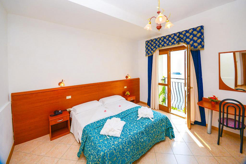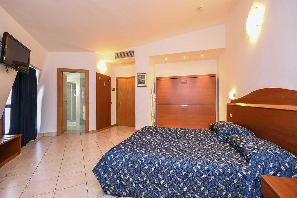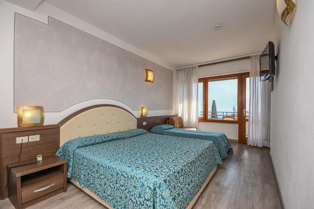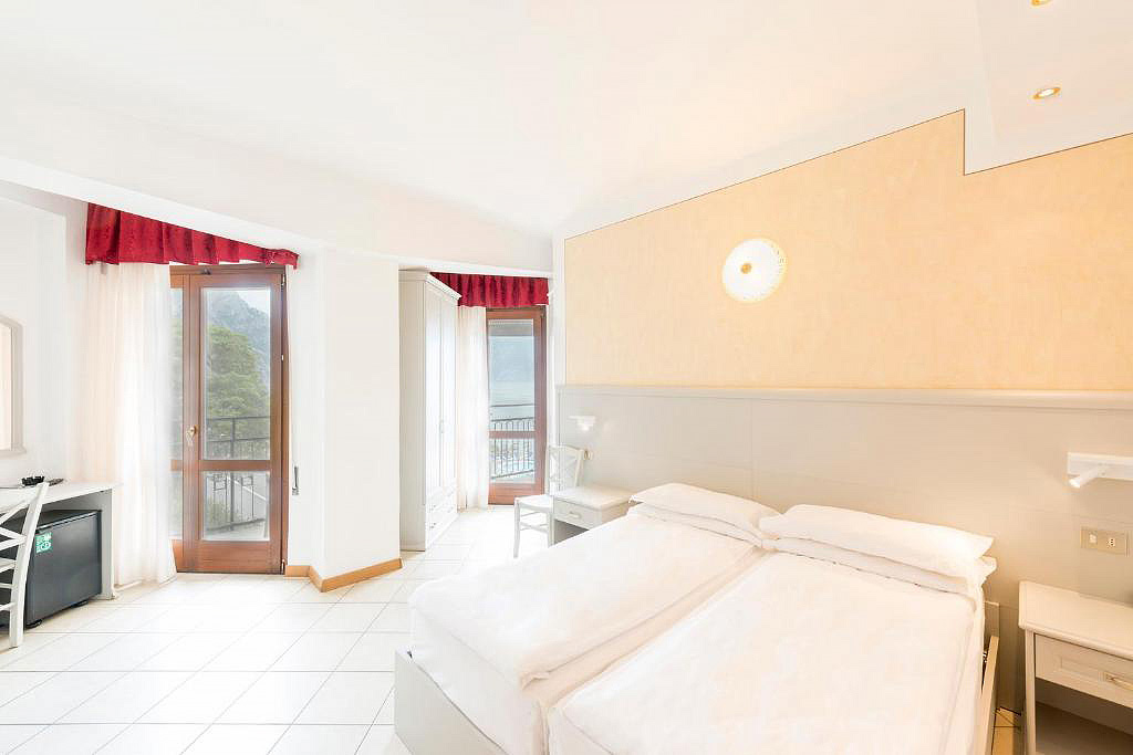 pokoj s manželskou postelí, sociální zařízení, balkon s výhledem na jezero; 3. lůžka zpravidla pevná či formou přistýlky