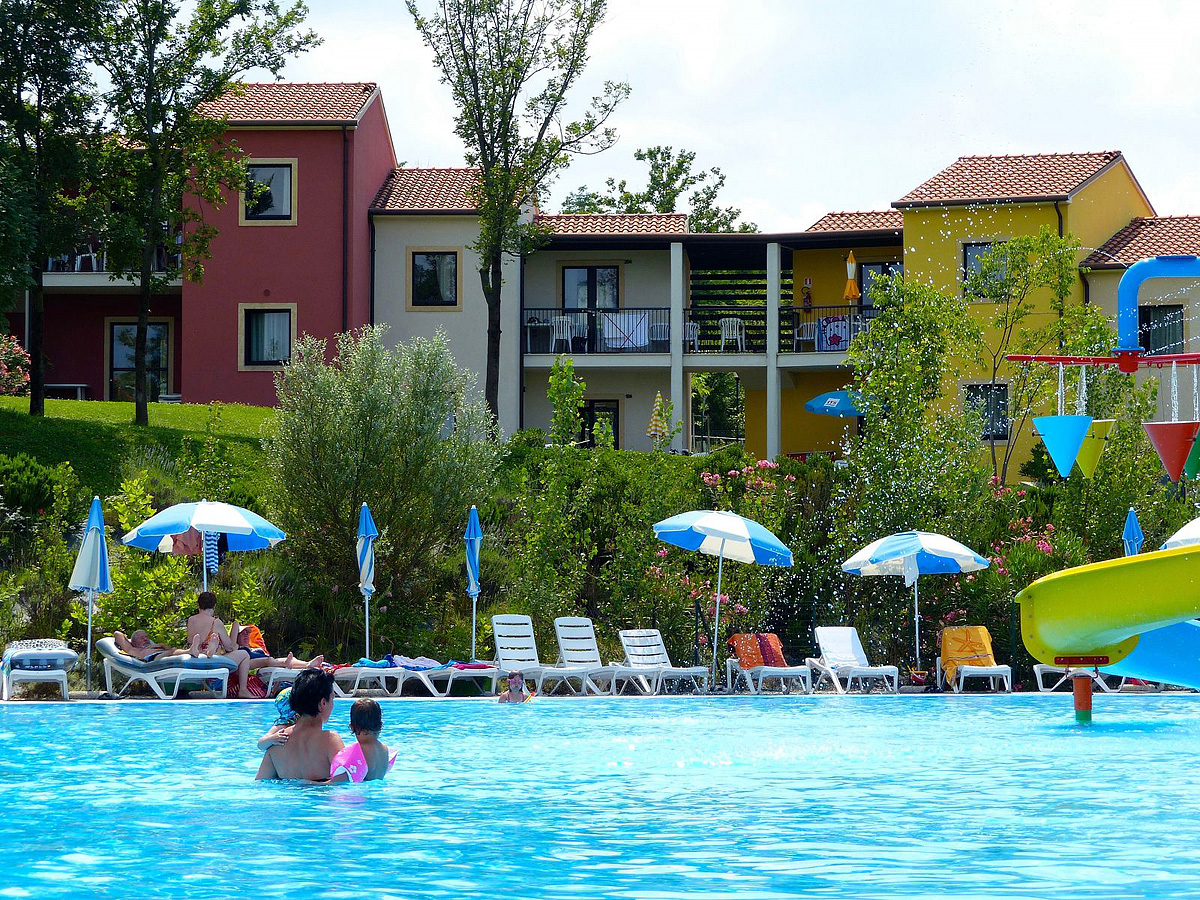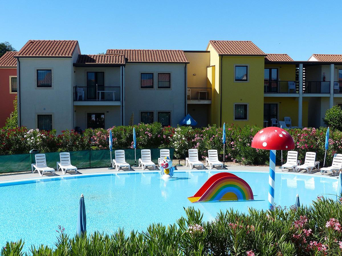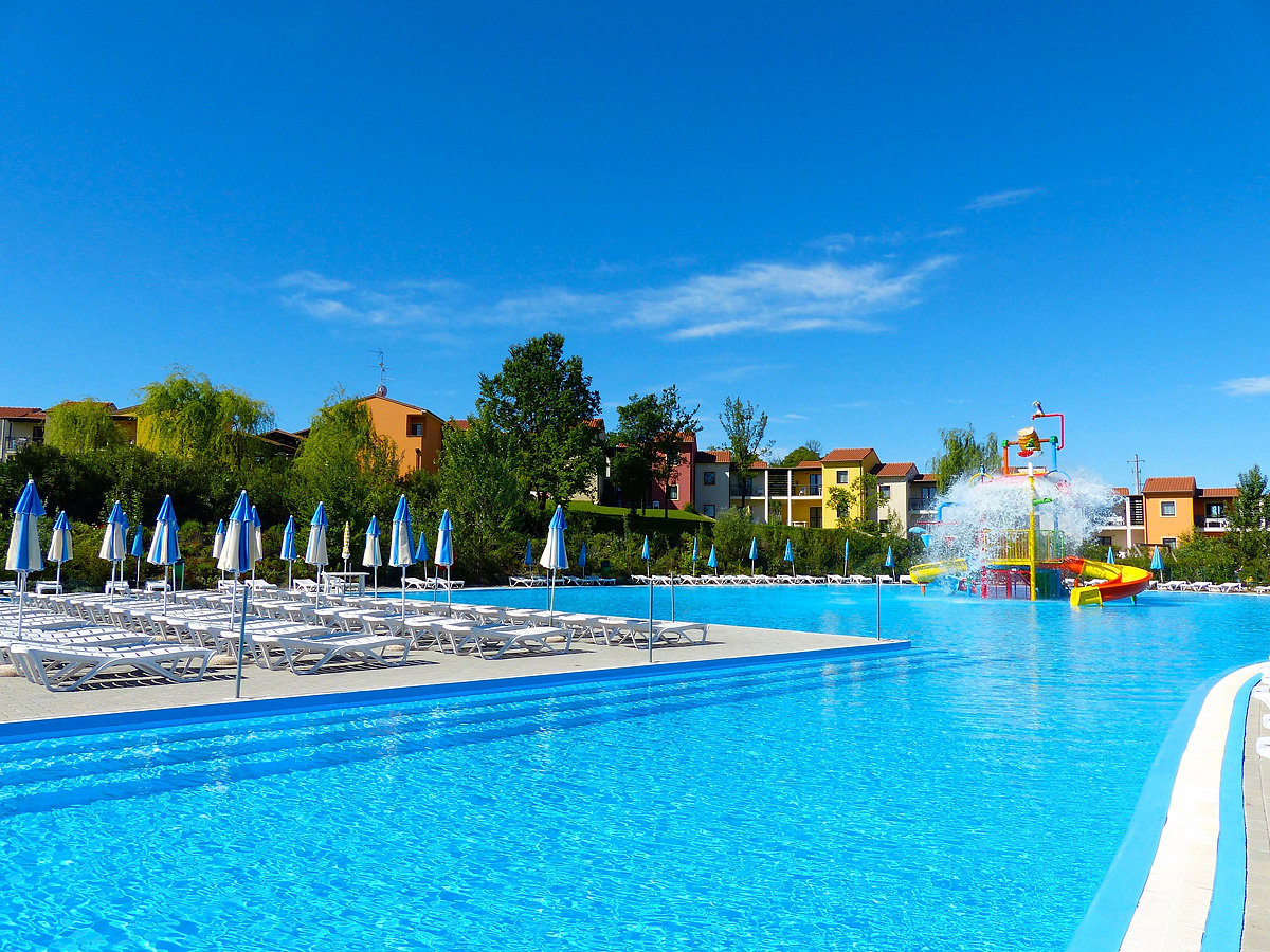 bazén 1.400 m² s dětským tobogánem, slunečníky a lehátky, bazén (délka 50 m, hloubka 120 cm) se slunečníky a lehátky, dětský bazén 480 m², (hloubka 55 cm), plážový volejbal, půjčovna jízdních kol*