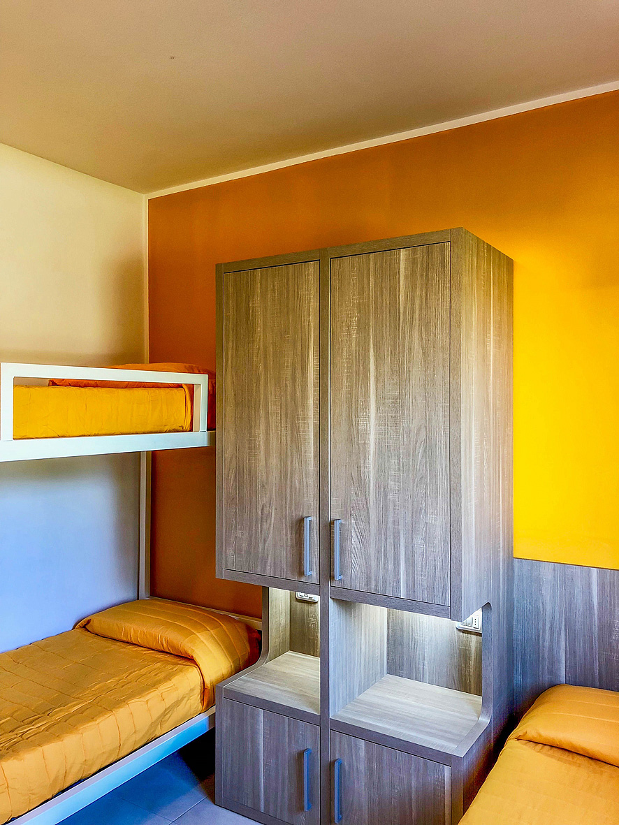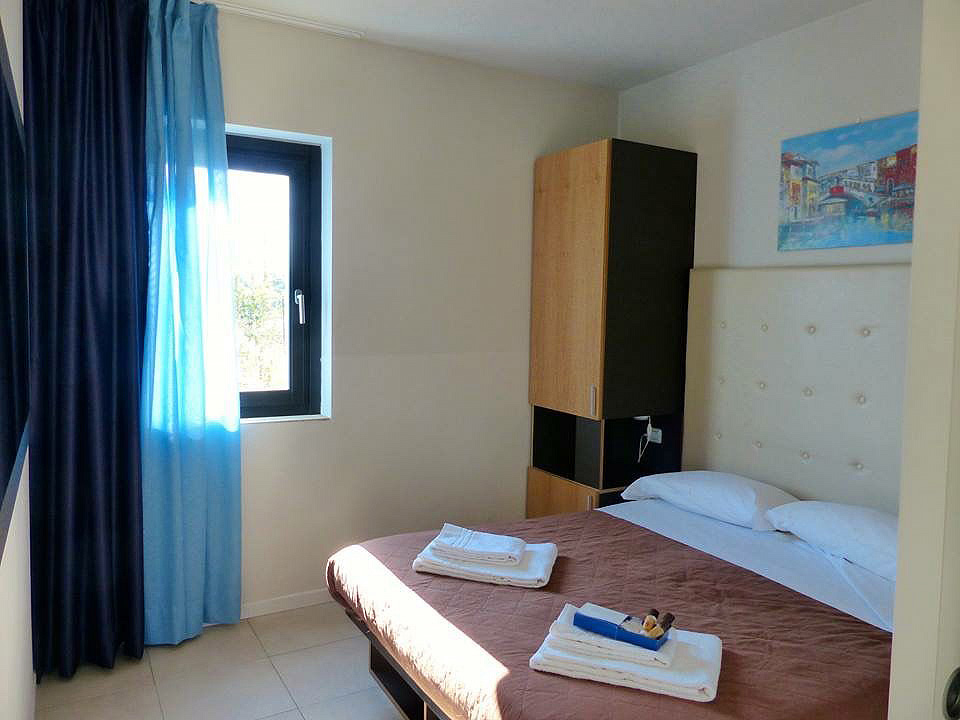 38 m² - 1 ložnice s manželskou postelí, 1 ložnice se 2 samostatnými lůžky či palandou, obývací pokoj s kuchyňským koutem a rozkládacím gaučem pro 2 osoby, sociální zařízení se sprchou, balkon; apartmán se nachází v prvním patře