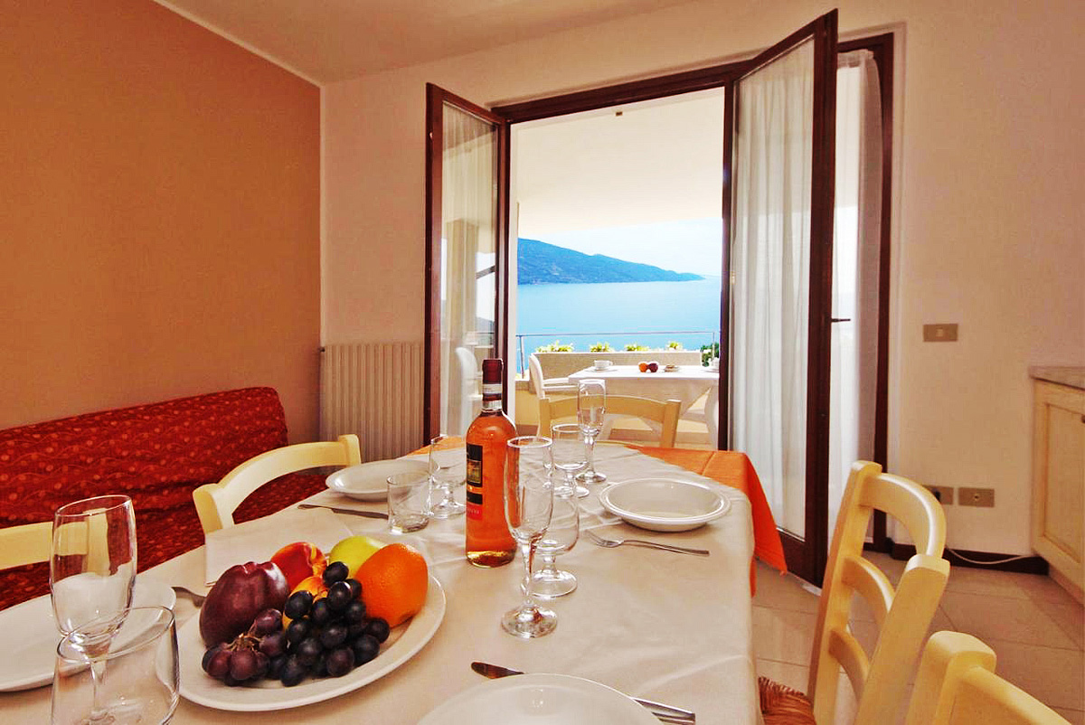 1 ložnice s manželskou postelí či 2 samostatnými lůžky, obývací pokoj s kuchyňským koutem a rozkládacím gaučem pro 2 osoby, sociální zařízení se sprchou, balkon, terasa či zahrádka, výhled na jezero